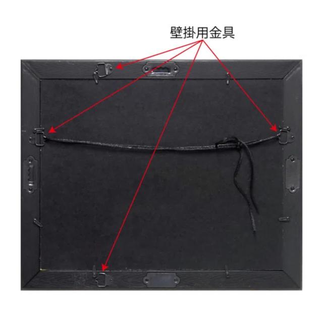 フレームに壁掛用金具が付いておりますので、付属のヒモを結び、壁に取り付けた金具に引っ掛けます。