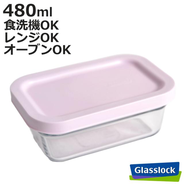 保存容器 480ml グラスロック リングテーパーレクタングル ( Glasslock ガラス 密閉 耐熱ガラス 冷凍 冷蔵 電子レンジ対応 食洗機対応 オーブン対応 強化ガラス ストッカー 容器 BPAフリー 角型 割れにくい かわいい おしゃれ 耐熱 )