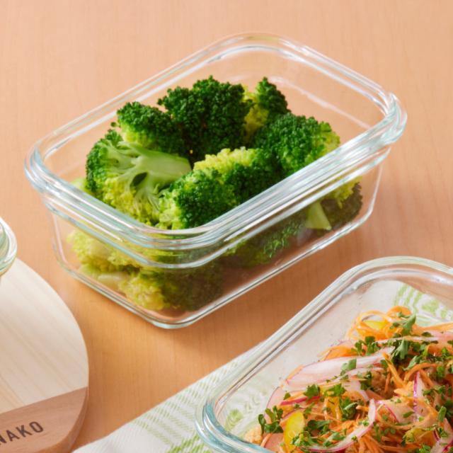 通常の3倍の硬さの強化ガラス製で抜群の耐久性を誇ります。冷凍保存・電子レンジ・オーブン・食洗機も使用可能で保存から調理・片付けまでこなせます。ガラス容器なので中身が見やすく、冷蔵・冷凍保存の際も取り出しやすいです。そのまま食卓に出してもサマになります。