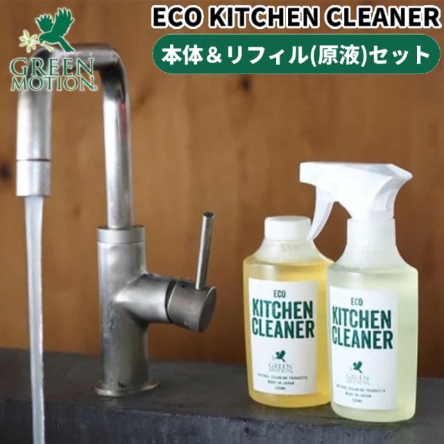 グリーンモーション GREEN MOTION 【本体&リフィル(原液)セット!】ECO KITCHEN CLEANER エコキッチンクリーナー キャンプ アウトドア キッチン洗剤 洗剤 クリーナー 油汚れ 食器洗剤 液体洗剤 植物由来 低刺激 スプレー 防災 中性 日本製 GM-008