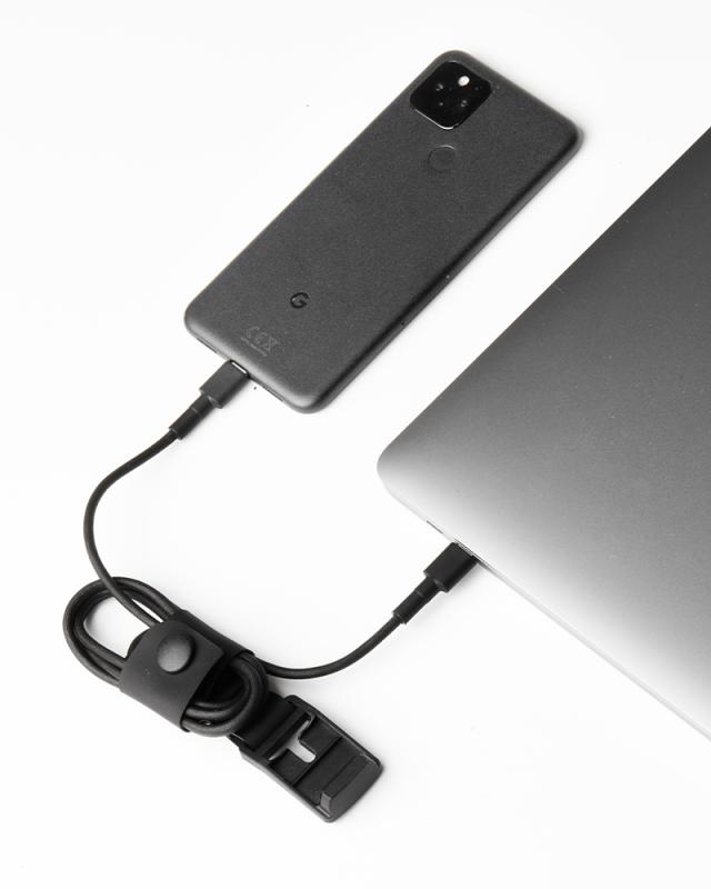 何かとカバンの中でごちゃごちゃになりがちなケーブル。しっかりボタン式フックでひとまとめにすることでコンパクトに持ち運ぶことが可能。