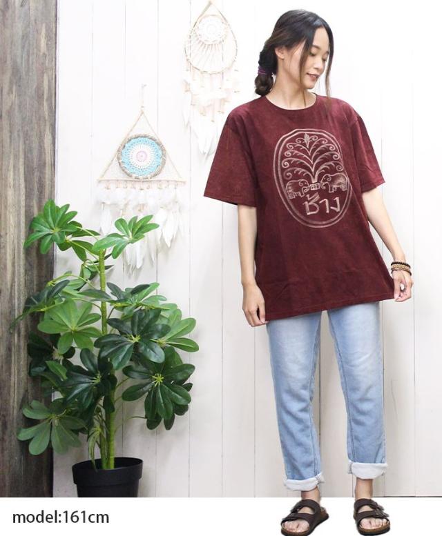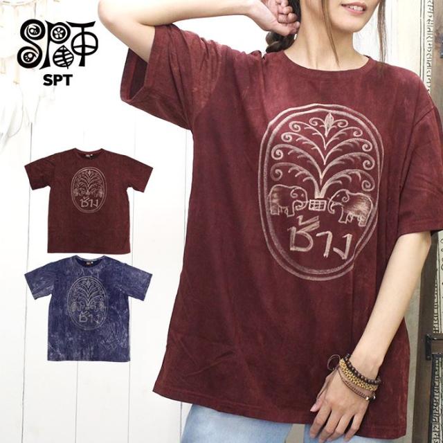 エスニック Tシャツ 半袖 カットソー 半袖 男女兼用 【SPT】 ハンドペイント ビアチャン ウォッシュ エスニック アジアン タイビール