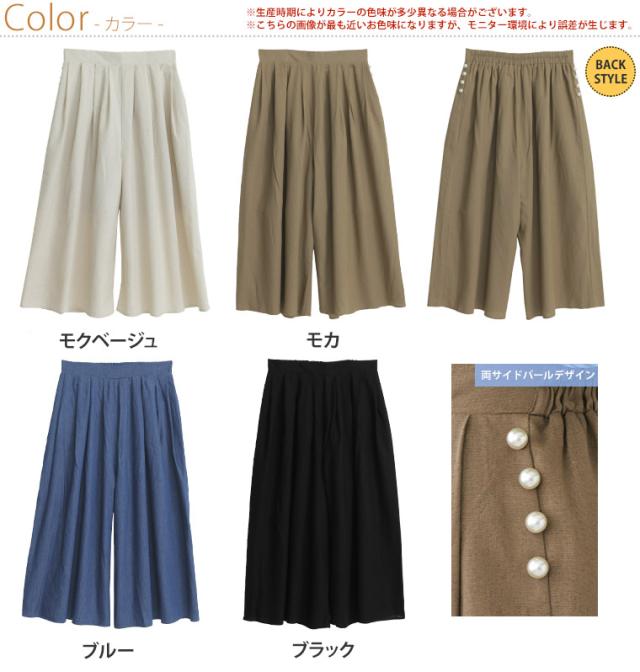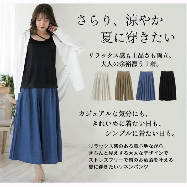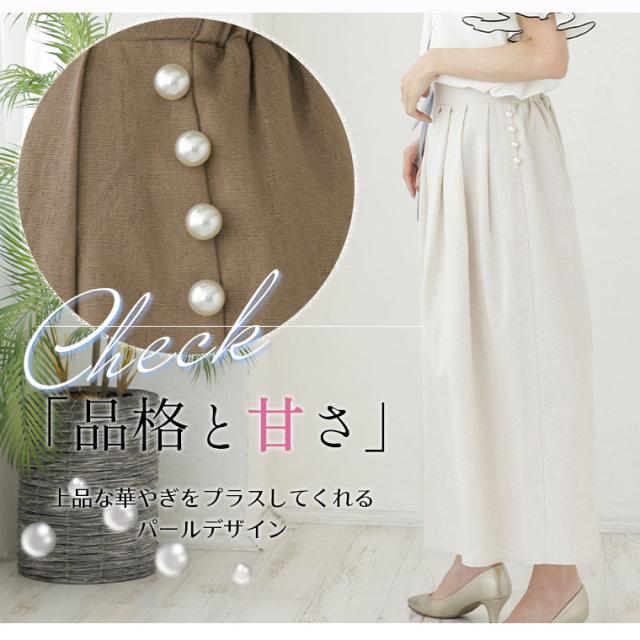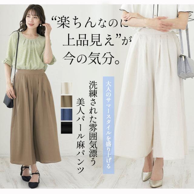 新作 大きいサイズ レディース パンツ | Rin ぽっこりお腹も美人にカバー さらり美脚 パール付 レーヨン 麻 ウエストタック パンツ [861374] LL 3L 4L 5L 6L
