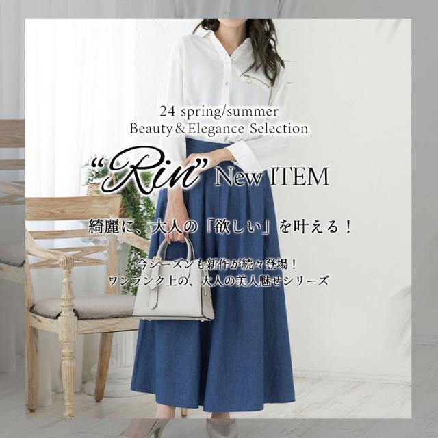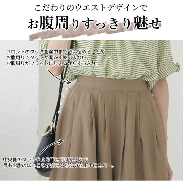 Rin さらり美脚 レーヨン麻パール付きウエストタックパンツ