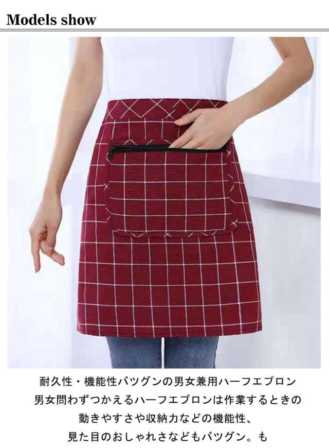 | 耐久性・機能性バツグンの男女兼用ハーフエプロン 男女問わずつかえるハーフエプロンは作業するときの動きやすさや収納力などの機能性、見た目のおしゃれさなどもバツグン。 ポケットがあり、家事や作業に使うさまざまな小物を収納できる優れものです!安心のファスナー付き、ポケットから落ちる心配もありません。 ハーフェプロンなら、くるっとウエストに回して結ぶだけの簡単スタイルなのでお子様だって簡単にお使いいただけます。 シンプルなデザインでちょっとしたお買い物や急な来客にも着たままでOK。 | |