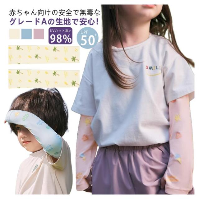 総柄 日焼け防止 UVカット率?98% キッズ uv uv 袖カバー 吸汗 接触冷感 冷感 夏 アームカバー ベビー 手袋 腕カバー 速乾 可愛い UVカット おしゃれ ロング丈 指穴 女の子 子供 男の子 UV手袋 スポーツ アウトドア 海水浴 あり 夏用 冷え対策 日よけ UPF50+