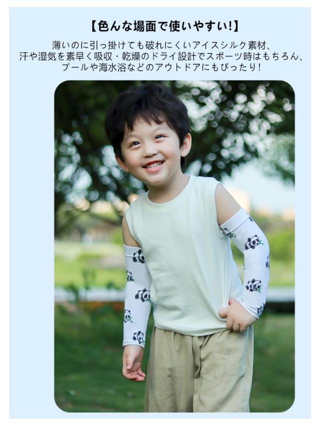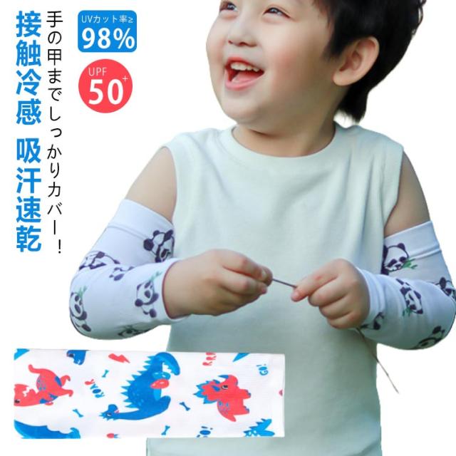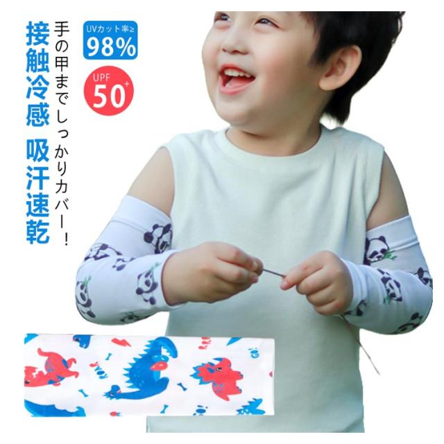 アームカバー ベビー キッズ 子供 冷感 UPF50+ 日焼け防止 UVカット 接触冷感 吸汗 速乾 UVカット率?98% uv 手袋 腕カバー 袖カバー 可愛い 総柄 おしゃれ ロング丈 指穴 あり 女の子 男の子 UV手袋 スポーツ アウトドア 海水浴 夏