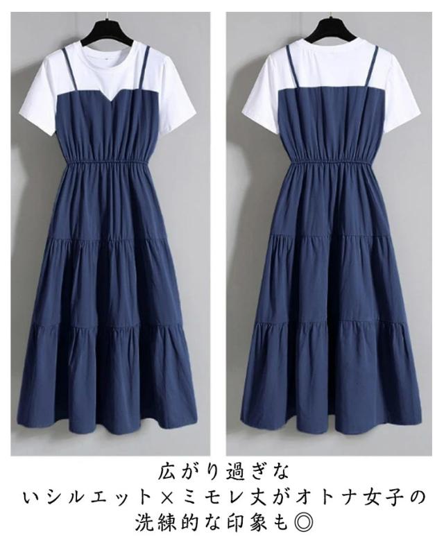 | 重ね着風のtシャツドッキングワンピース。 大人カジュアルモードな印象に。 異素材切替たことが大人の魅力も演出してくれます。 広がり過ぎないシルエット×ミモレ丈がオトナ女子の洗練的な印象も◎ 普段着はもちろん、フォーマルシーンにも使えるロングワンピースです。 | |