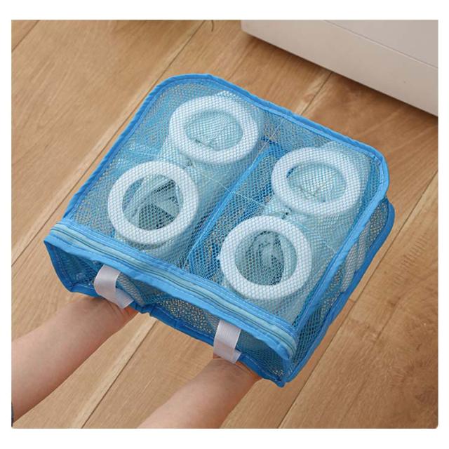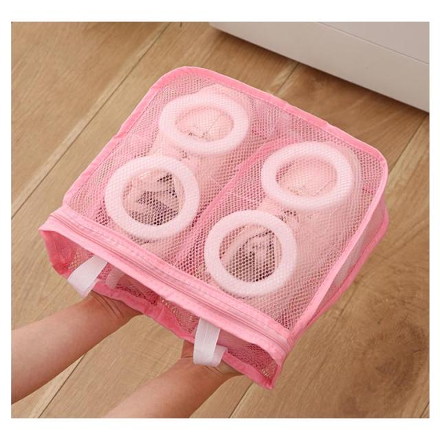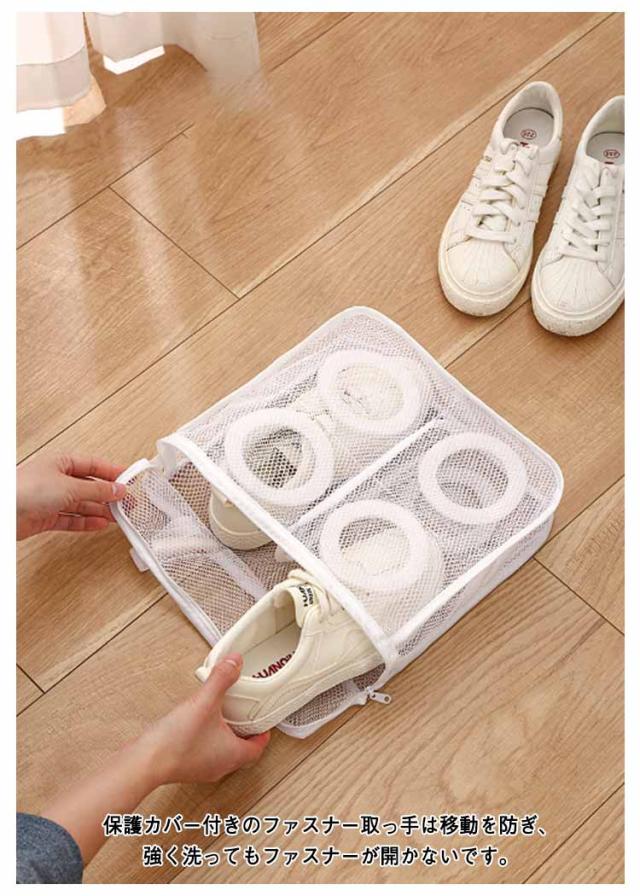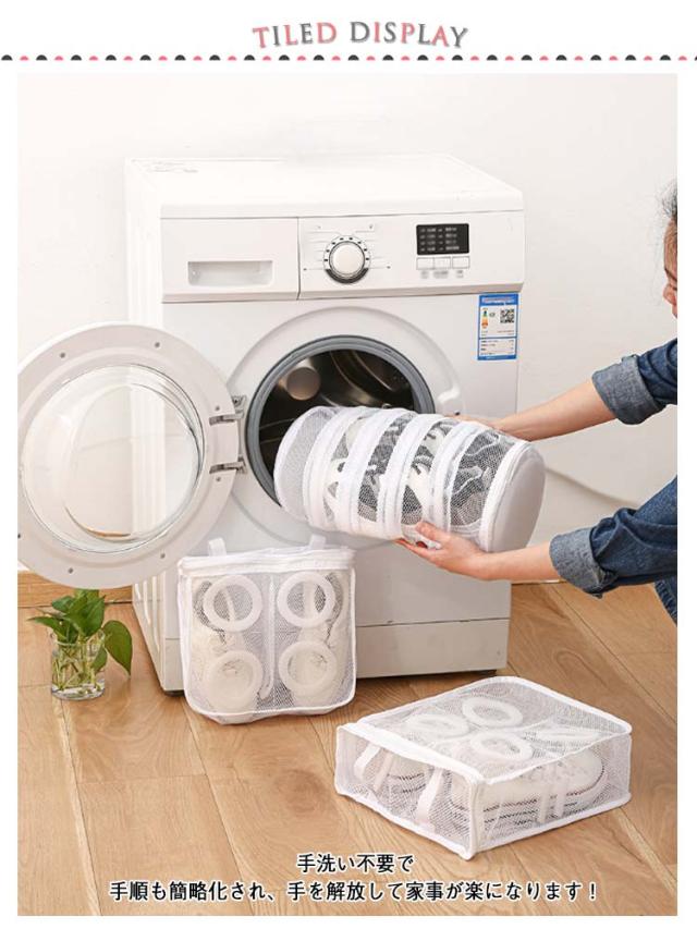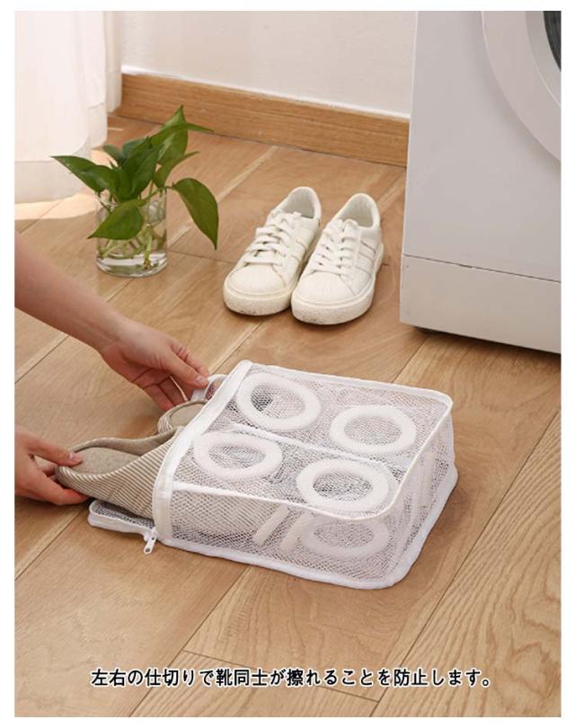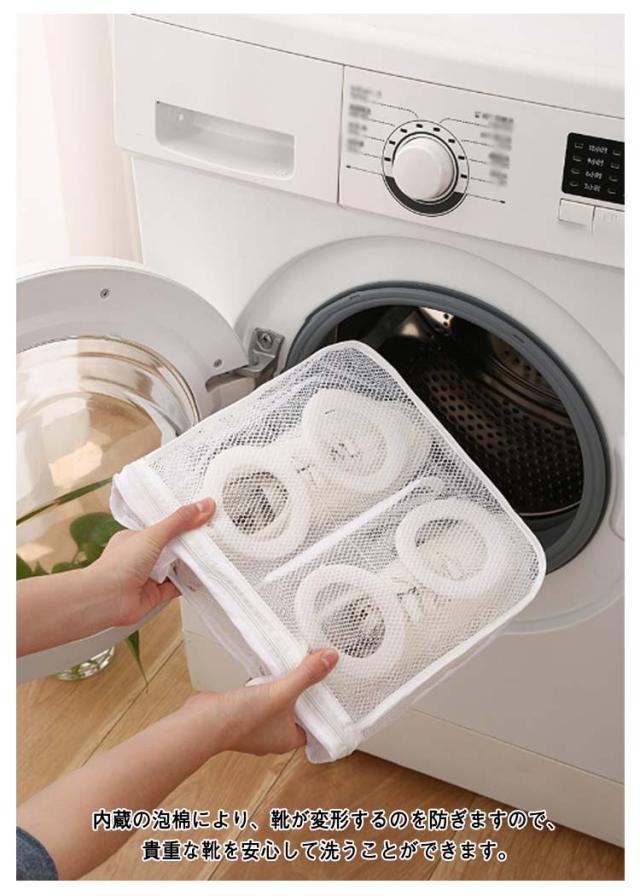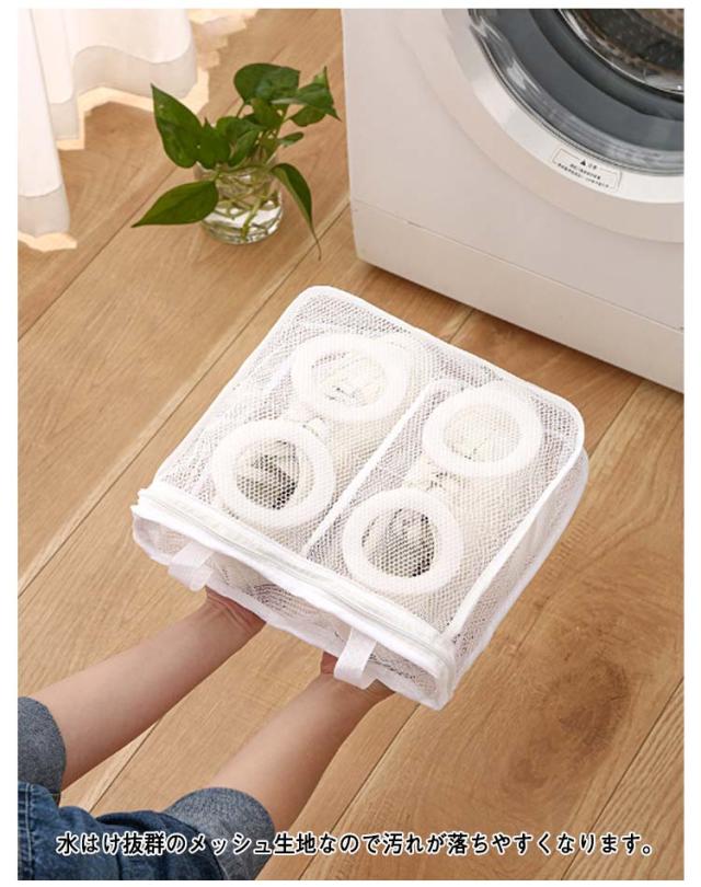 | シューズを丸洗い!ネットに入れて洗濯機で洗うだけ! 水はけ抜群のメッシュ生地なので汚れが落ちやすくなります。 手洗い不要で手順も簡略化され、手を解放して家事が楽になります! 内蔵の泡棉により、靴が変形するのを防ぎますので、貴重な靴を安心して洗うことができます。 保護カバー付きのファスナー取っ手は移動を防ぎ、強く洗ってもファスナーが開かないです。 左右の仕切りで靴同士が擦れることを防止します。 靴袋にはダブルボタンの吊り紐が付いており、洗濯後に直接吊るすことができ、簡単で便利です。 | |