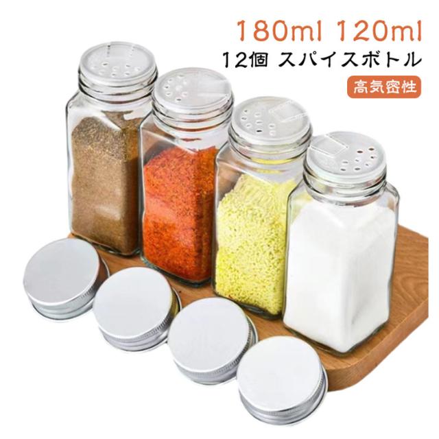 12個セット 120ml 180ml 卓上 調味料入れ ガラス製保存容器 保存 12個セット スパイスボトル 調味料ケース 調味料ストッカー 多段階調味料穴 保存容器 高気密性 スパイス入れ キッチン用品 便利