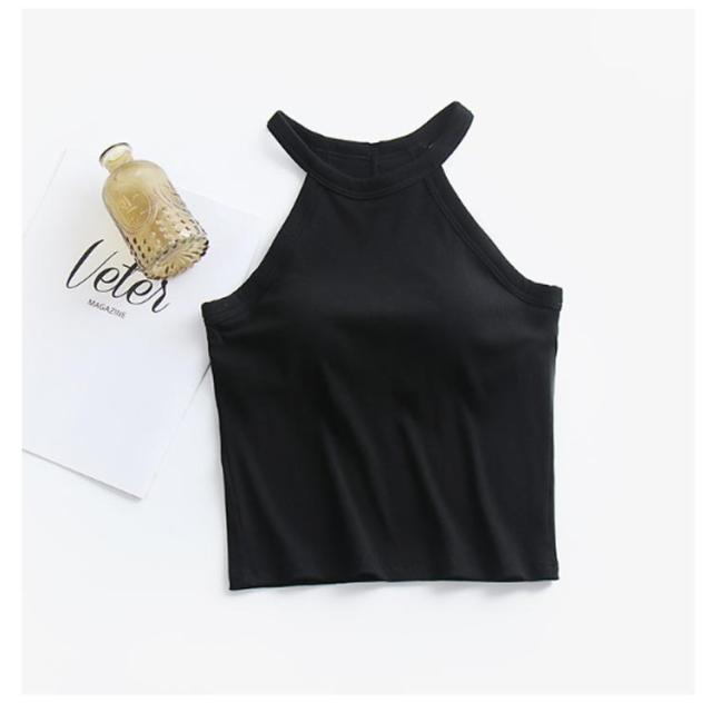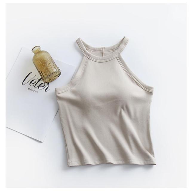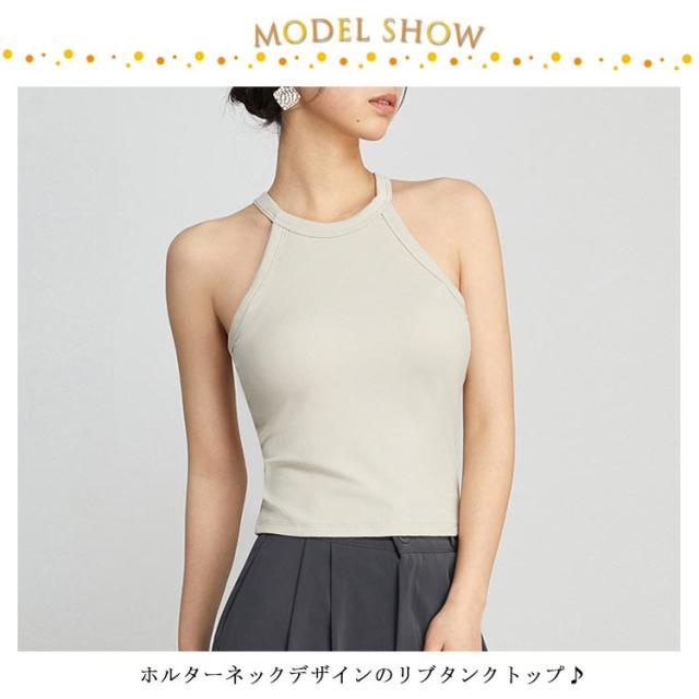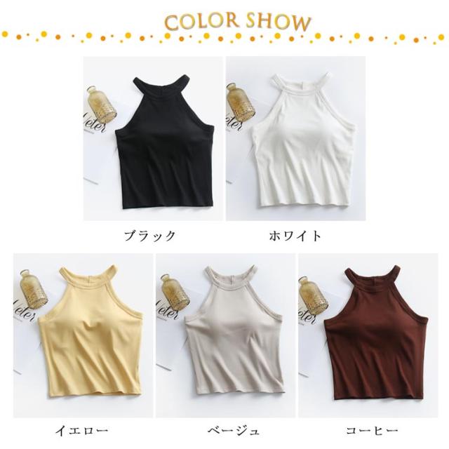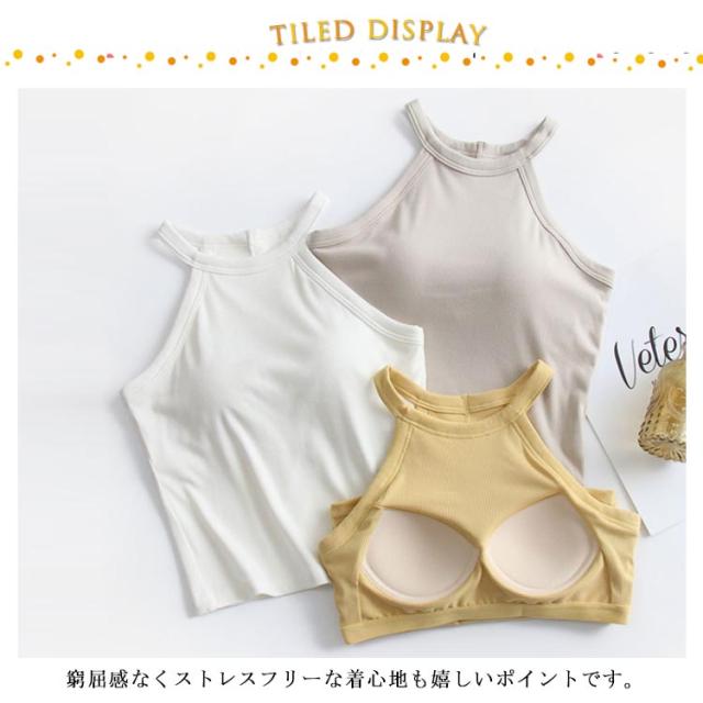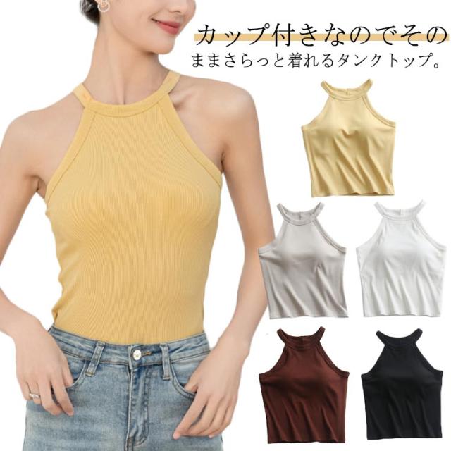 タンクトップ トップス ブラカップ 無地 レディース スポーツ ホルターネック カップ付き キャミソール ブラトップ リブ リブ生地 カジュアル インナー ホルターネックブラ ニット レイヤード 重ね着 おしゃれ カップ付き カットソー 春夏 夏