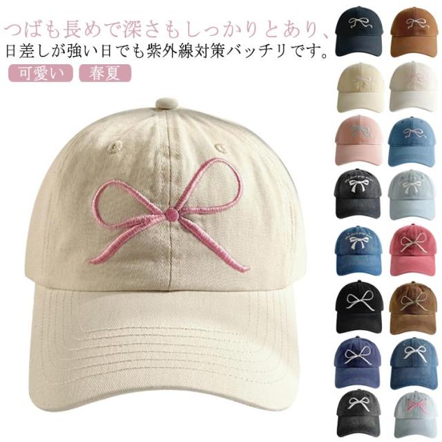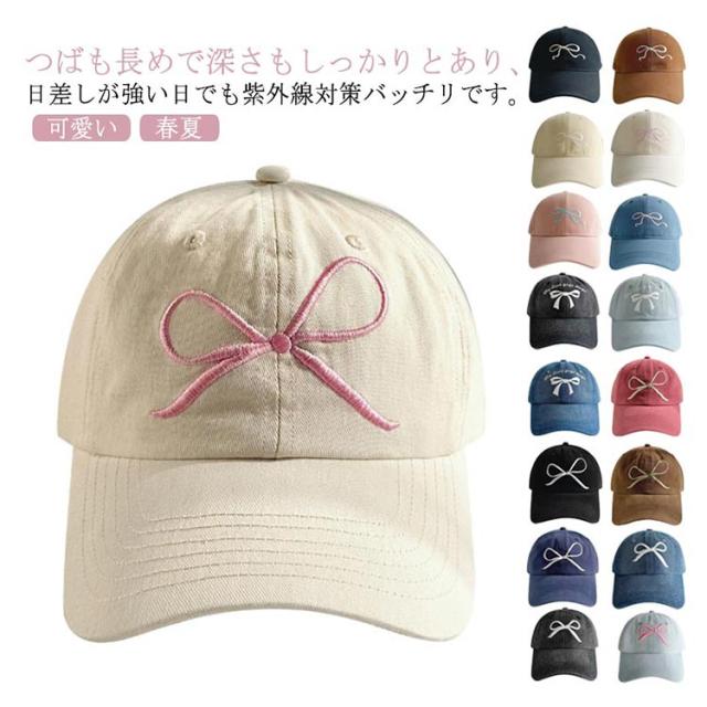 小顔効果 キャップ 深め リボン 刺繍 春夏 綿 大きめ キャップ 韓国 キャップ 帽子 おしゃれ 遮光 夏用 帽子 コットン おしゃれ カジュアル UVカット おでかけ 紫外線対策 日よけ ベースボールキャップ 大人 可愛い 野球帽 ぼうし