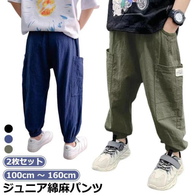 ジュニア ジュニア キッズ パンツ ロング 男の子 男の子 速乾 パンツ 虫よけパンツ ロングパンツ 子供服 サルエルパンツ キッズ 裾リブパンツ ボトムス 2枚セット 夏用 リネン風 ジュニア カーゴパンツ 夏 春夏 無地 サルエル 薄手 サマーパンツ