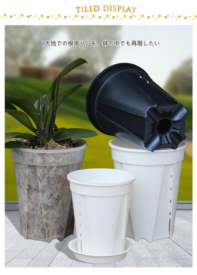 | 根見える 5号x3鉢 流れ出た排水を受ける底皿付き 「大地での根張り」を、鉢の中でも再現したい 陶器鉢と一緒に飾っても、個性的で見劣りしません | |