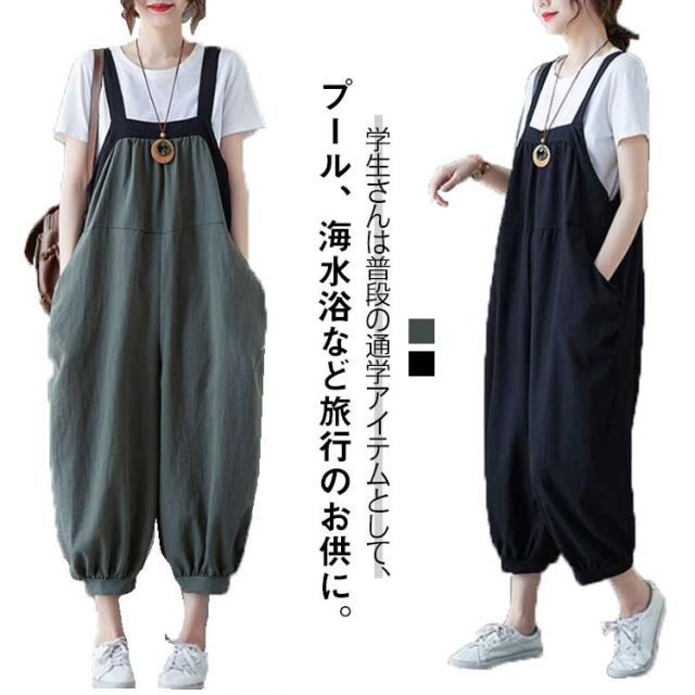麻 サロペット サロペットパンツ ママ サロペット リネン混 大きいサイズ レディース ロングサロペ つなぎ オールインワン ロンパース 無地 シンプル リネン マタニティウエア 綿 サロペ 春 夏 秋 春服