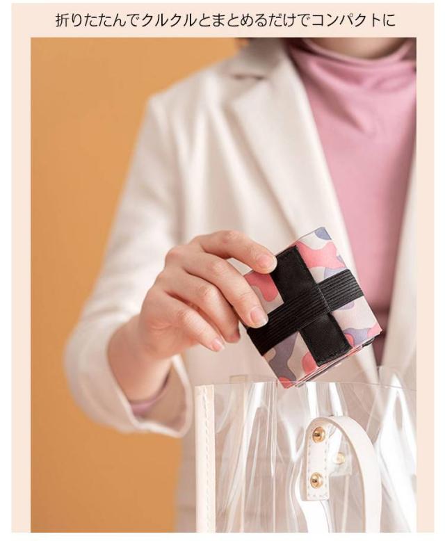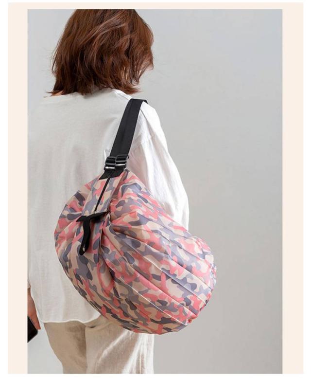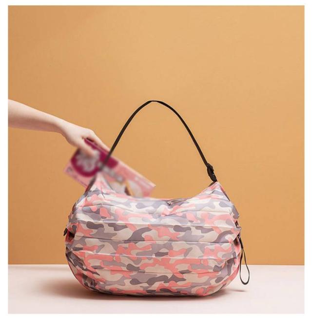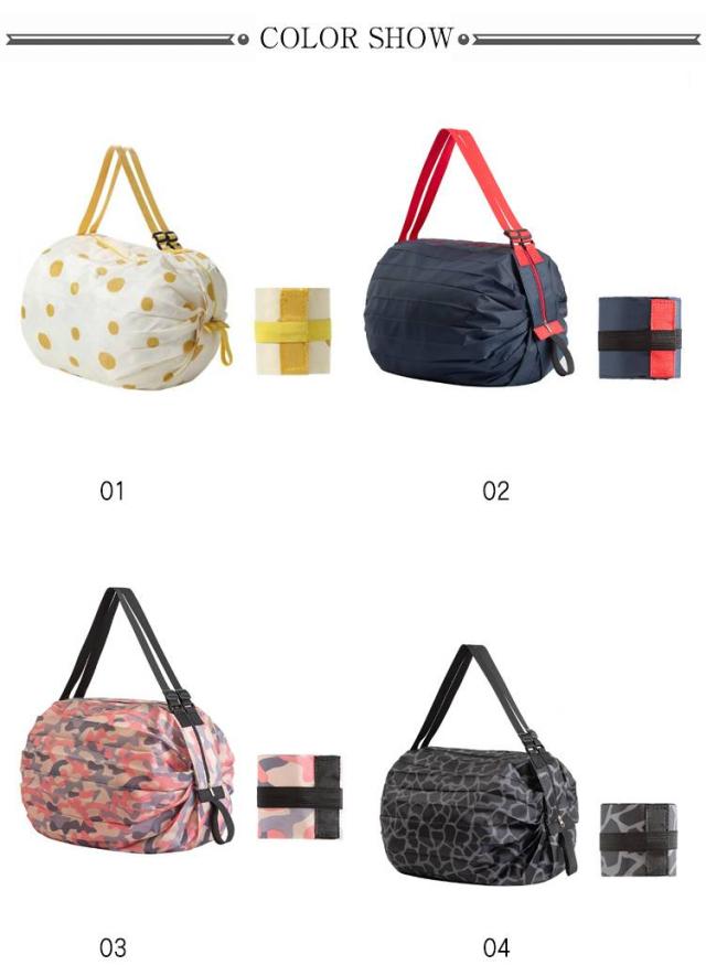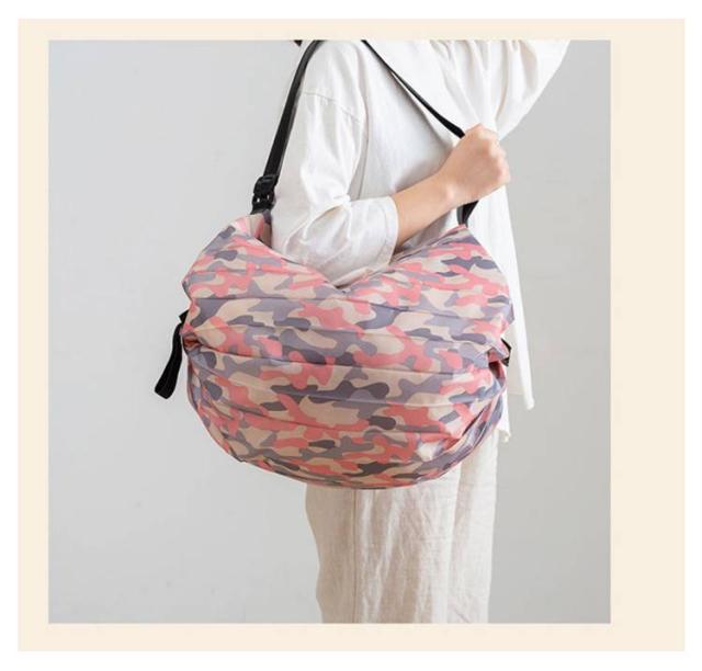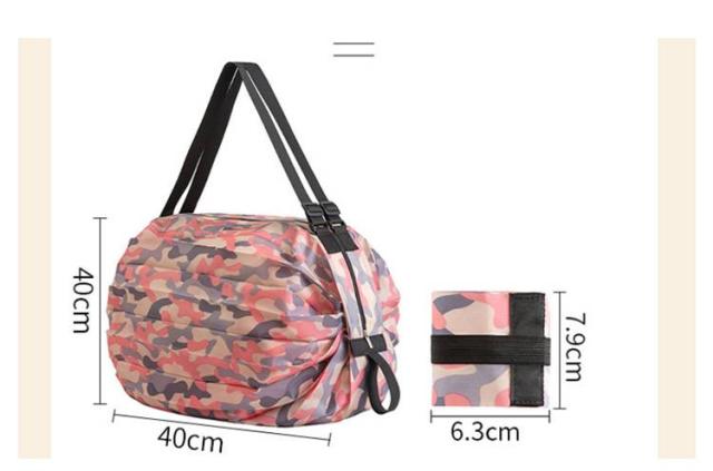 | 両端を引っ張るだけで一気にたためるバッグ レジカゴにも掛けられる大容量サイズ 荷物の重さで袋口がしぼられて、中身がこぼれにくい設計 折りたたんでクルクルとまとめるだけでコンパクトに | |