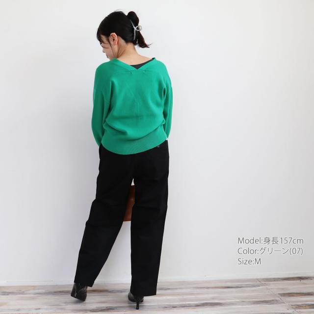 首元はスッキリとしたVネックタイプ!