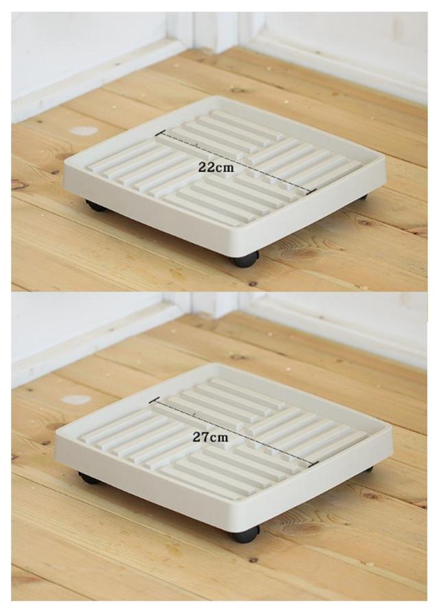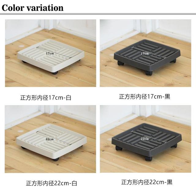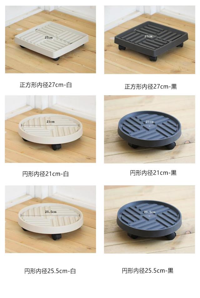 | サイズについての説明 | 【正方形内径17cm】外径20.5cm、高さ6cm、キャスター4個、耐荷重15kg 【正方形内径22cm】外径26cm、高さ6cm、キャスター4個、耐荷重20kg 【正方形内径27cm】外径31cm、高さ6.3cm、キャスター5個、耐荷重30kg 【円形内径21cm】外径23.8cm、高さ6cm、キャスター4個、耐荷重15kg 【円形内径25.5cm】外径28.7cm、高さ6.2cm、キャスター4個、耐荷重20kg |