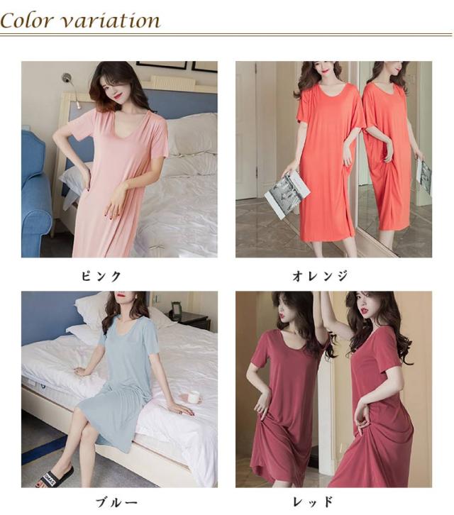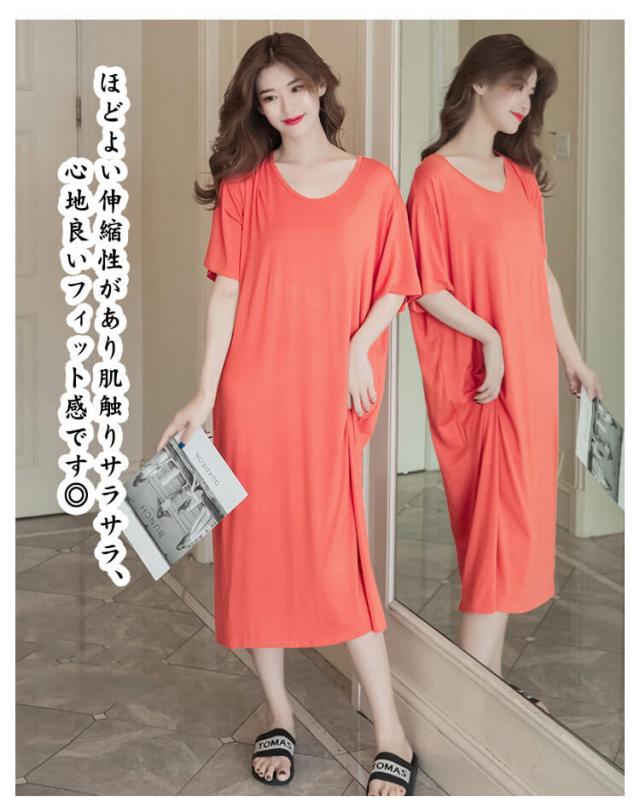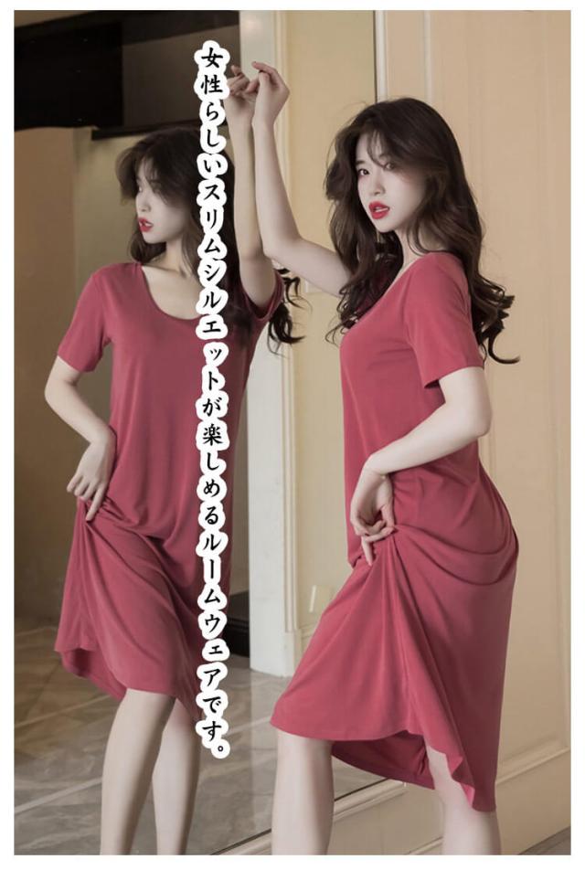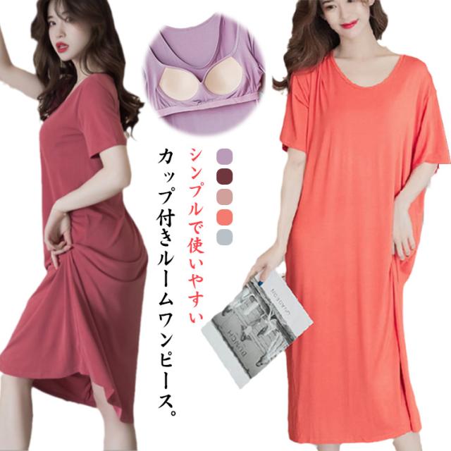 カップ付き ルームワンピース ワンピース 半袖 半袖 涼しい 薄手 部屋着 無地 ロング丈 かわいい リラックス 春 夏 女性服 ワンピース おうち時間 パジャマ 肌触り抜群 きれいめ 大きいサイズ 体型カバー