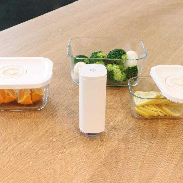 真空状態にして食材の美味しさを長く保てる便利な真空ポンプです。専用のキャニスターや真空袋、市販の真空袋が使えます。食品用ラップや保存袋よりも美味しさが長持ちするので、使い切れなかった時やまとめ買いした時の食材を無駄にならずエコです。