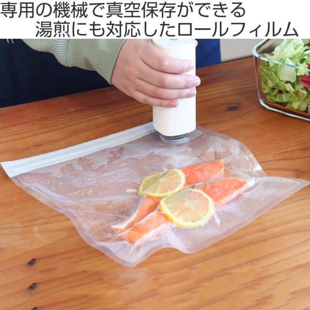 ![]() 湯煎もできる専用保存袋 | ![]() 食材に合わせて好きな長さで使える専用フィルム 幅28cm | ![]() 食材に合わせて好きな長さで使える専用フィルム 幅20cm |