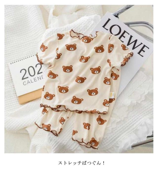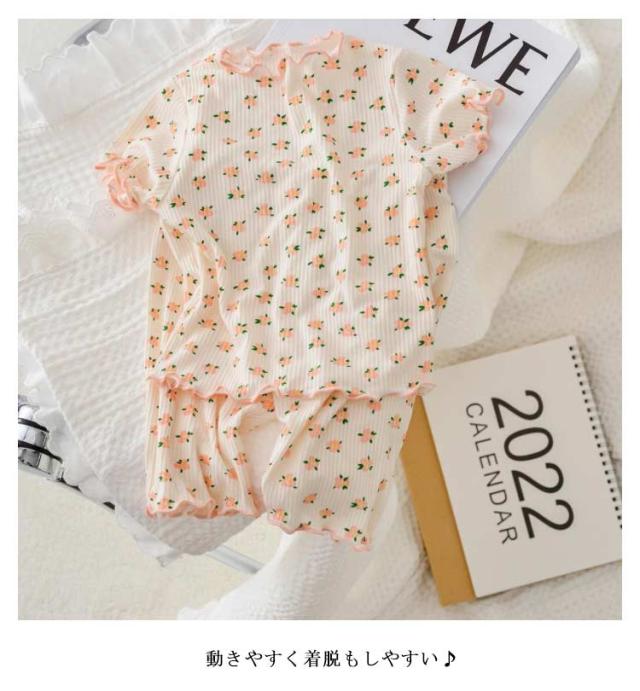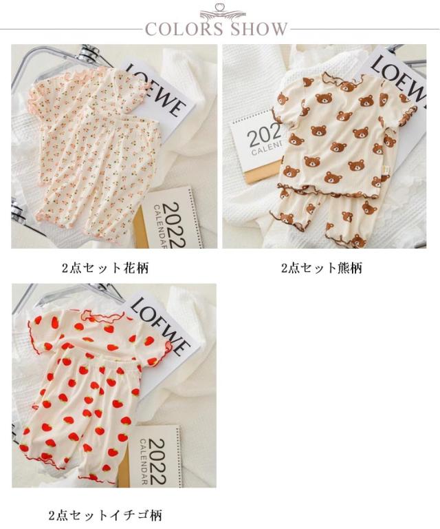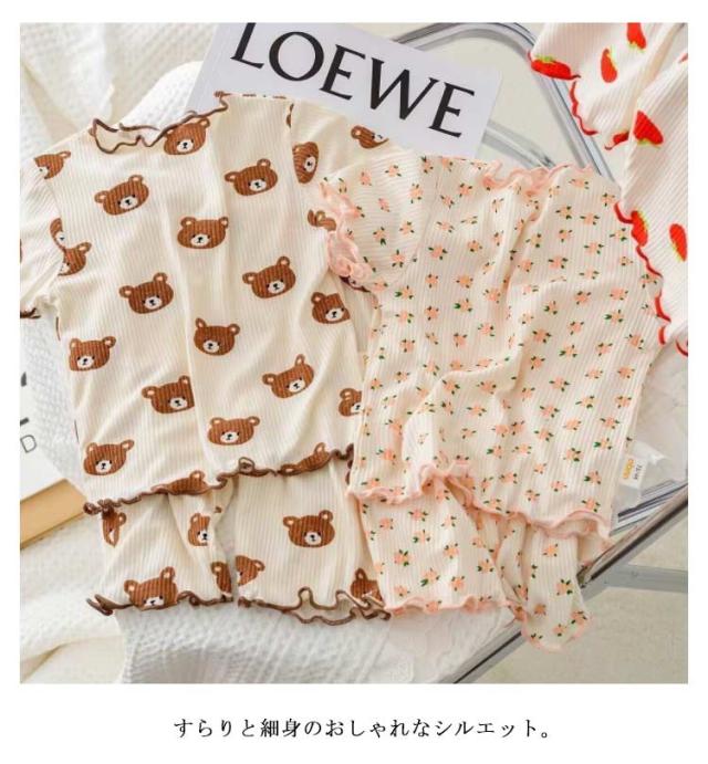 花柄 パジャマ 夏 半袖 子供服 キッズ 半袖 ルームウェア 女の子 ルームウェア ハーフパンツ 寝巻 上下セット 袖口フリル 半袖パジャマ パジャマ かわいい パジャマ いちご クマ 薄手 セットアップ 部屋着 子供 保育園 キッズパジャマ