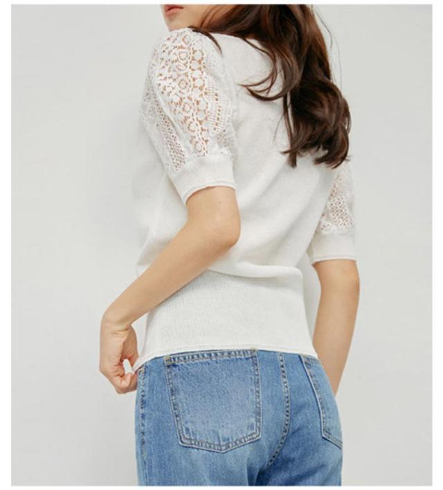 透かし編み袖 サマーニット 半袖 レディース 半袖ニット ニット トップス オフィスカジュアル 五分袖 パフスリーブ ニットソー 上品 きれいめ 春夏 冷感 ひんやり 20代 30代 40代 50代 S M L XL