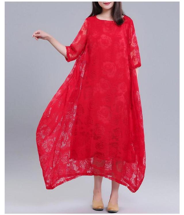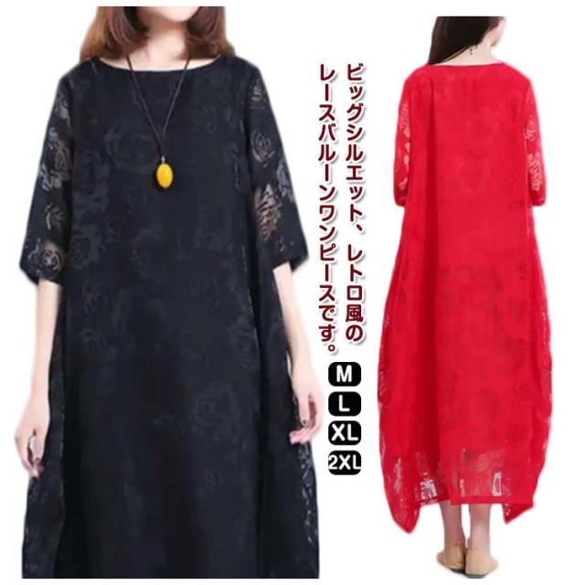 バルーンワンピース ワンピース 夏 ロングワンピース レースワンピース レディース マキシワンピース 半袖 シースルー 体型カバー コクーンワンピース きれいめ 着痩せ 大人らしい ビッグシルエット M L XL 2XL