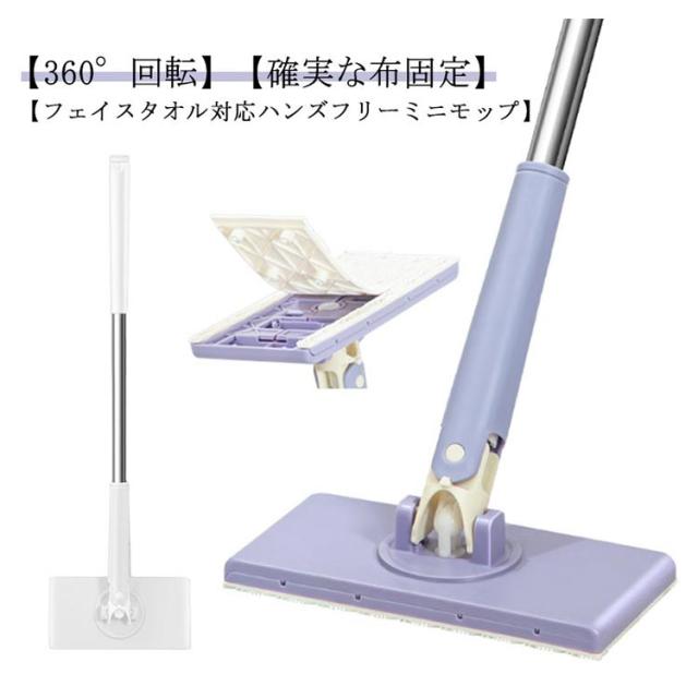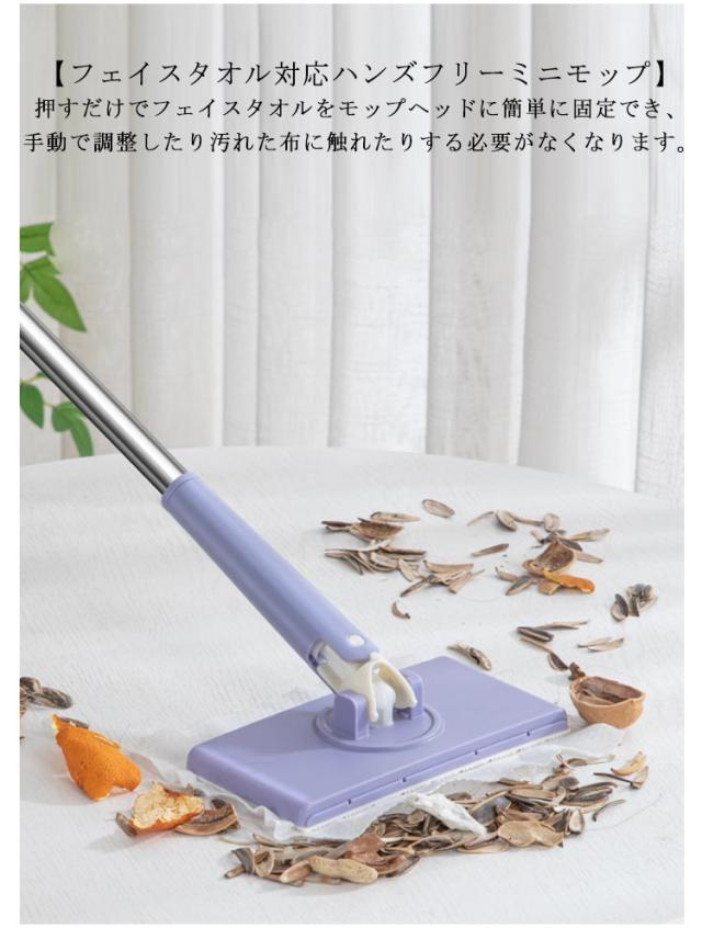 フェイスタオル対応 ハンズフリー ミニモップ 多機能 無手洗いモップ 床拭きシート ミニ 水拭きモップ 全自動 フェイスタオルモップ 乾湿両用 360°回転 腰曲げず 片手操作可能 床掃除モップ 多角度転換 操作簡単 フロアモップ 油汚れを手で洗う必要なし 掃除用タオル1枚つき