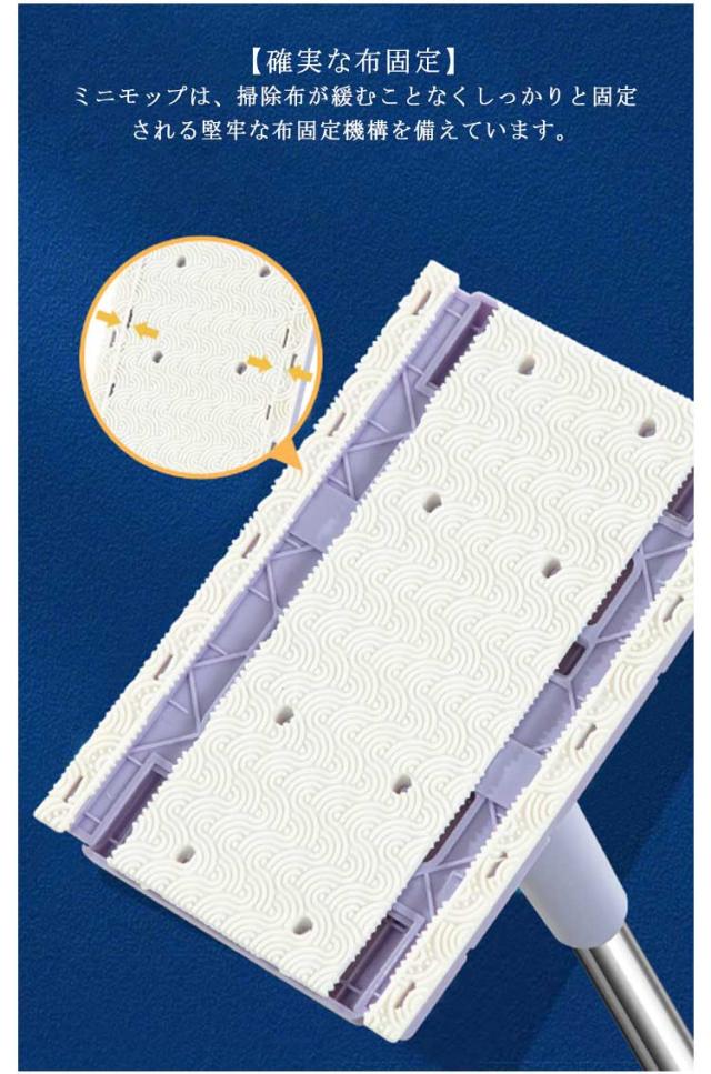 | 【フェイスタオル対応ハンズフリーミニモップ】押すだけでフェイスタオルをモップヘッドに簡単に固定でき、手動で調整したり汚れた布に触れたりする必要がなくなります。 【確実な布固定】ミニモップは、掃除布が緩むことなくしっかりと固定される堅牢な布固定機構を備えています。 【360°回転】この機能を使用すると、コーナーや狭いスペースに簡単に取り組むことができ、手付かずのエリアは残りません。 【フェイスタオルを再利用する】フェイスタオルを掃除目的で再利用することで、環境に良い影響を与えましょう。 使い捨てのクリーニングパッドや布はやめましょう。 【多目的使用】床のモップ掛け、キャビネット、鏡、壁、キッチンなどのモップ掛けに適したこの多用途モップは、さまざまな空間のさまざまな清掃ニーズに対応します。 | |