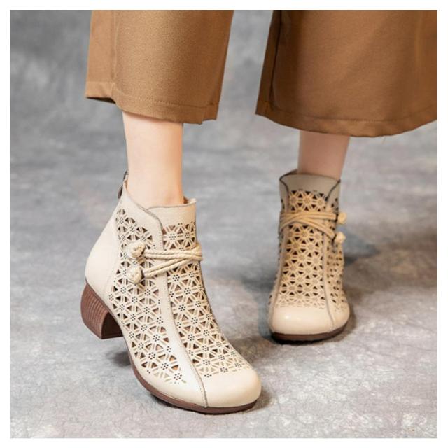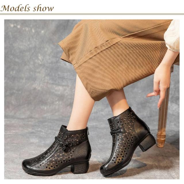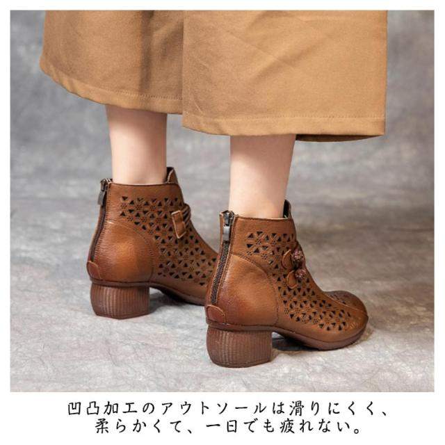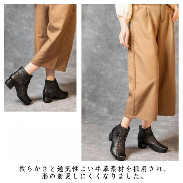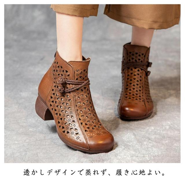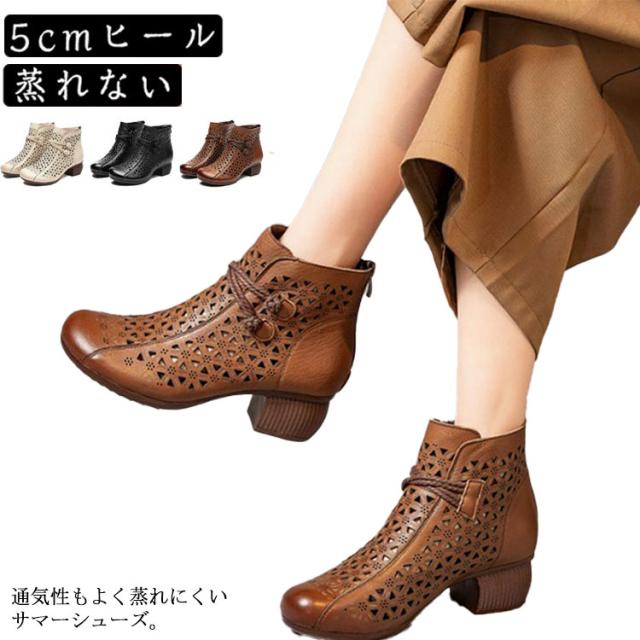 ブーツサンダル ブーティ 牛革 レディース 夏ブーツ サマーブーツ 本革 レザーブーツ 高見え ショートブーツ 夏用 外反母趾 5cmヒール 蒸れない 太ヒール 滑りにくい 歩きやすい 年寄り 母の日 大きサイズ 夏靴 通勤 おしゃれ 30代 40代 50代 送料無料