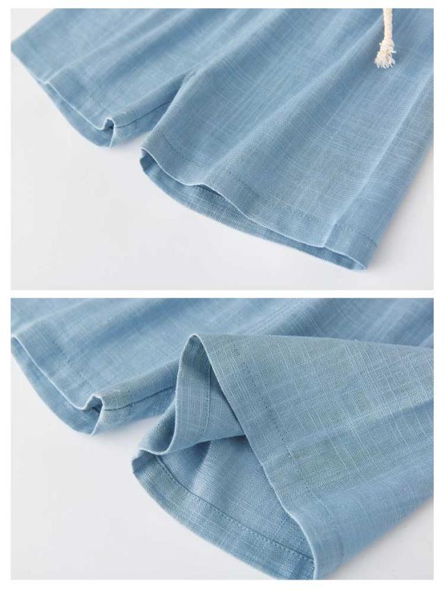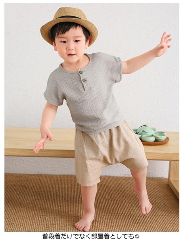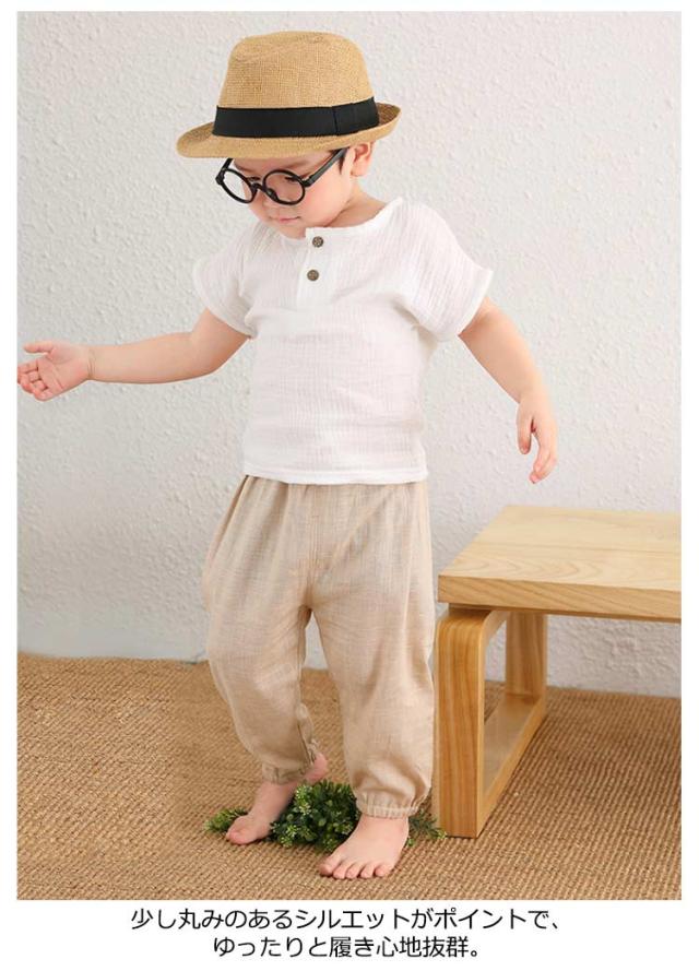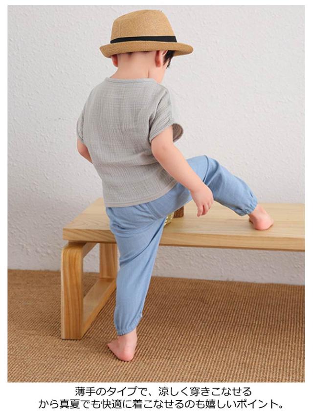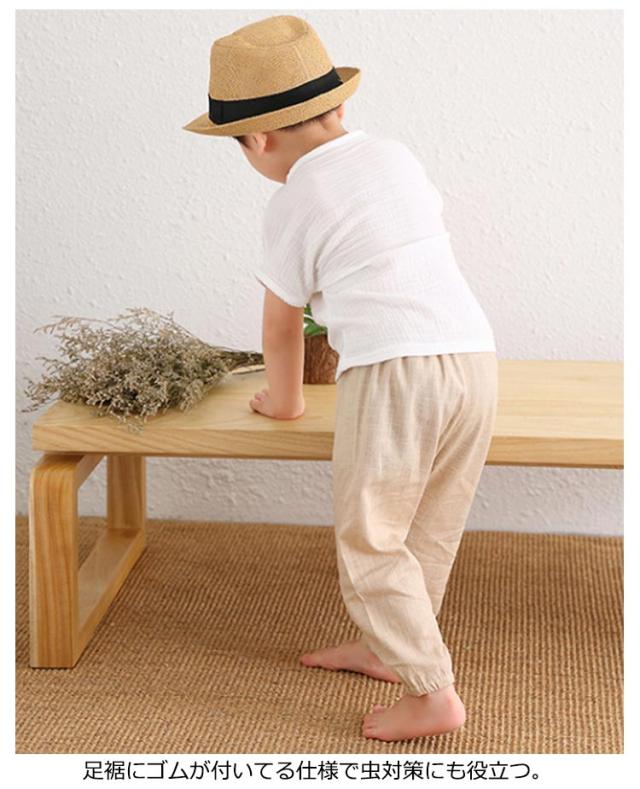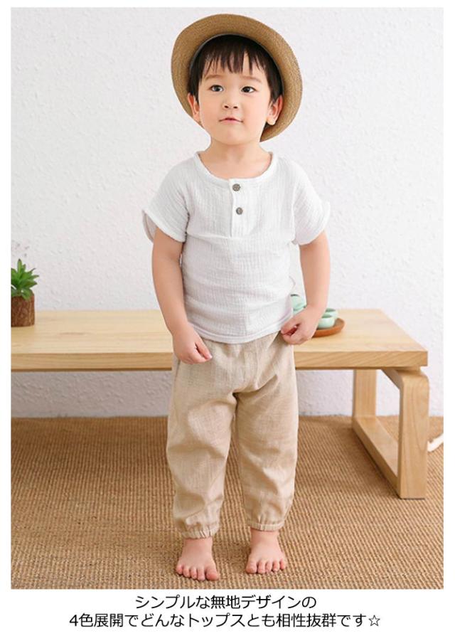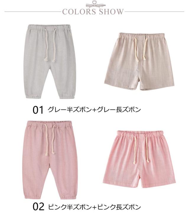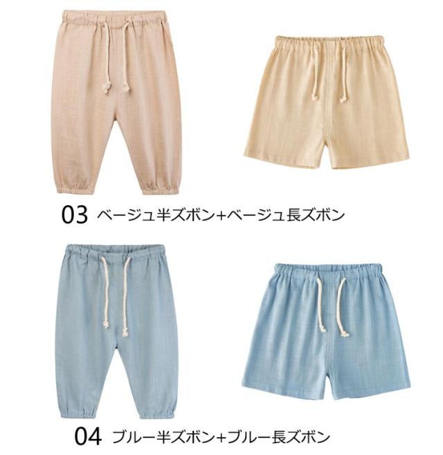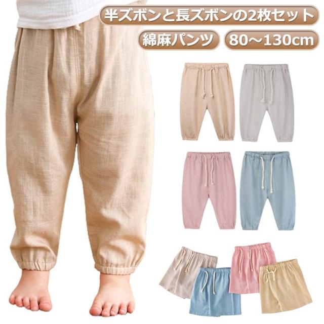| 【綿麻パンツ】【80〜130cm】【半ズボンと長ズボンの2枚セット】 通気性が良く快適な履き心地の綿麻パンツ。 少し丸みのあるシルエットがポイントで、ゆったりと履き心地抜群 シンプルな無地デザインの4色展開でどんなトップスとも相性抜群です☆ ウエストがゴムなのでお腹を締め付けず楽ちんです 足裾にゴムが付いてる仕様で虫対策にも役立つ 普段着だけでなく部屋着としても◎ 薄手のタイプで、涼しく穿きこなせるから真夏でも快適に着こなせるのも嬉しいポイント 綿素材で肌に優しく、真夏の日焼け対策や蚊対策などにもぜひお薦め | |