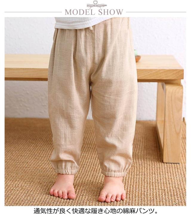 2枚セット 綿麻 パンツ キッズ 男の子 女の子 ベビー 子供 リネン 虫よけ ロングパンツ 半ズボン ハープパンツ ロング パンツ 春夏 薄手 長ズボン ウエストゴム 蚊よけパンツ ルームウェア サルエルパンツ 部屋着 無地 赤ちゃん