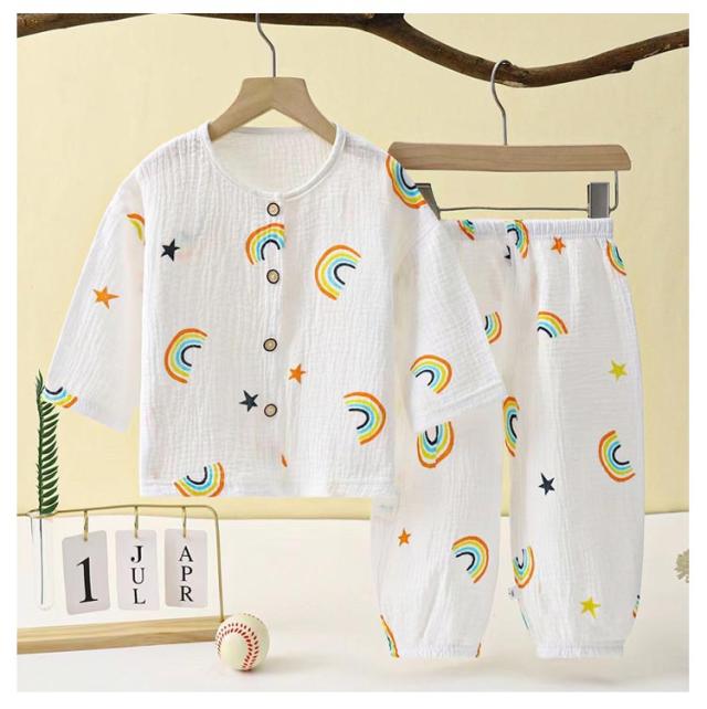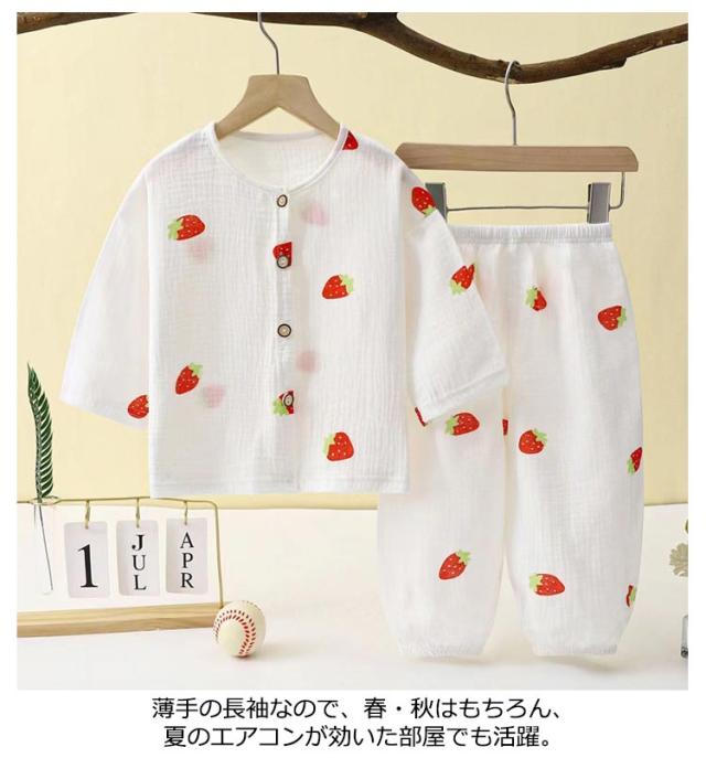 パジャマ キッズ 長袖 薄手 男の子 女の子 綿 ジュニア 恐竜 熊 イチゴ 虹 ドット さくらんぼ パジャマ ダブルガーゼ 150 前開き 子供 パジャマ 長袖 薄手 女の子 ダブルガーゼ ルームウェア 綿 薄手 2重ガーゼ コットン
