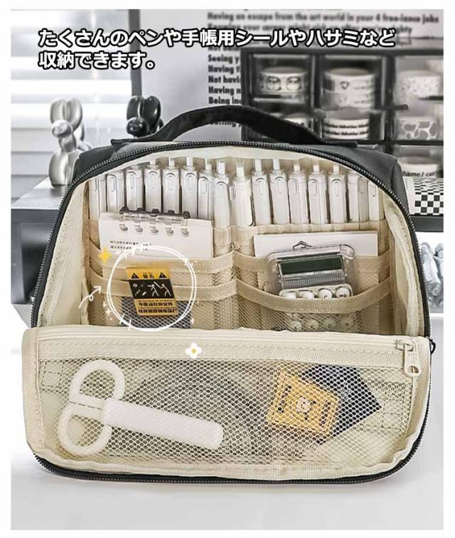 | 自立大きく開くペンケース 大切な手帳も、お気に入りの文房具も、可愛く持ち運べて立てられる! 手帳も文房具も、全部ひとつにまとめたい! 学校やカフェやオフィスで、いつでもお気に入りの文房具を使いたい! たくさんのペンや手帳用シールやハサミなど収納できます。 | |