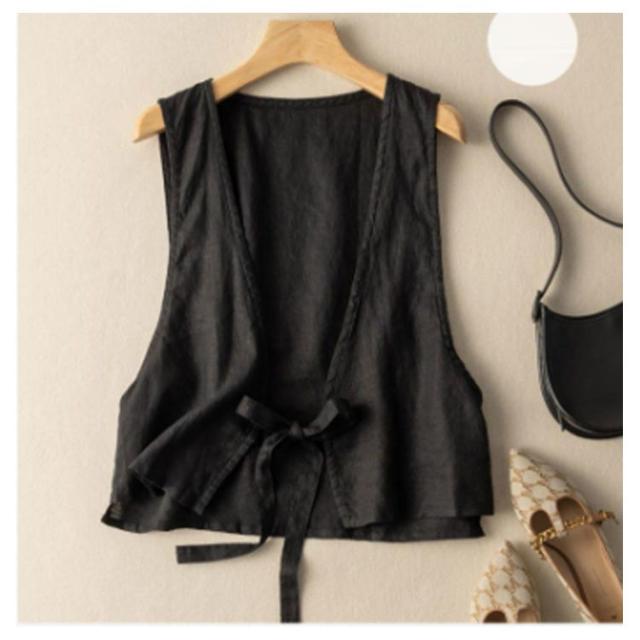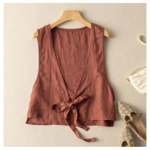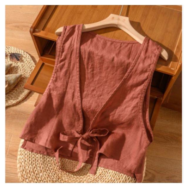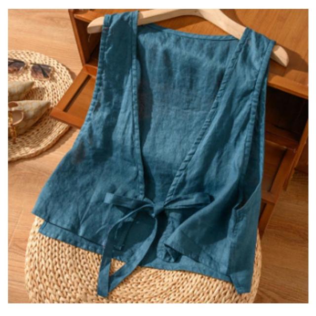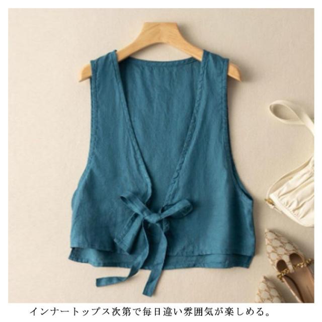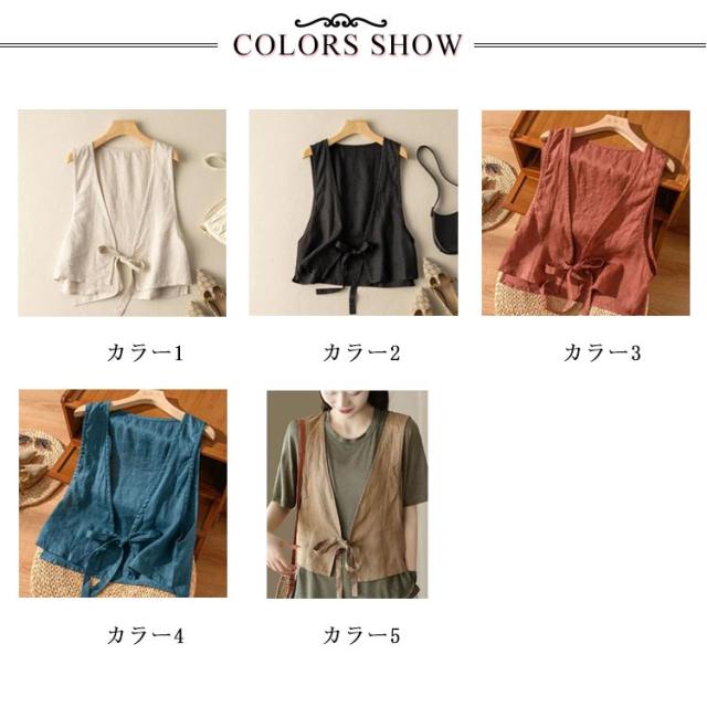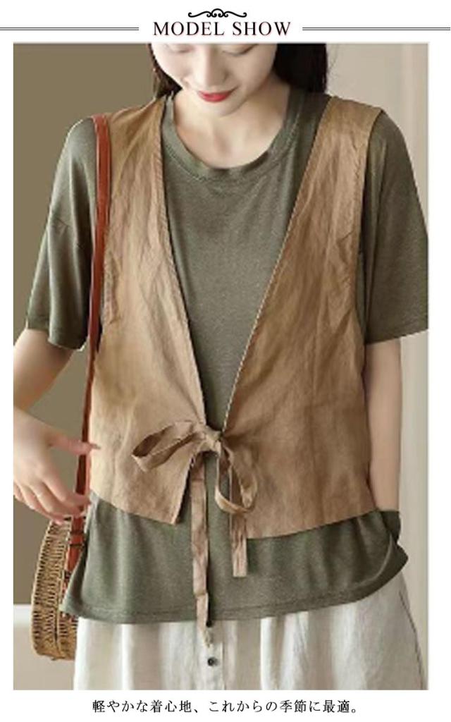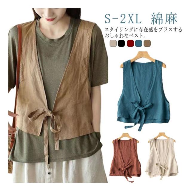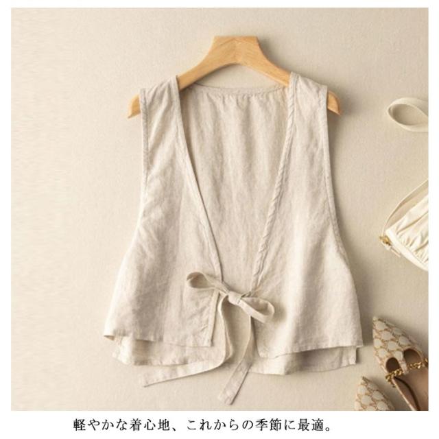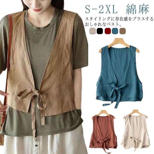 サマーベスト レディース ゆったり 前開ベスト ジレ 綿麻 ナチュラル カジュアルジレ ベスト カジュアルベスト 春夏 ベスト 重ね着 リボンベスト おしゃれ 夏ベスト リボン 薄手 サマージャケット ノースリーブ 羽織り エスニック S M L XL 2XL
