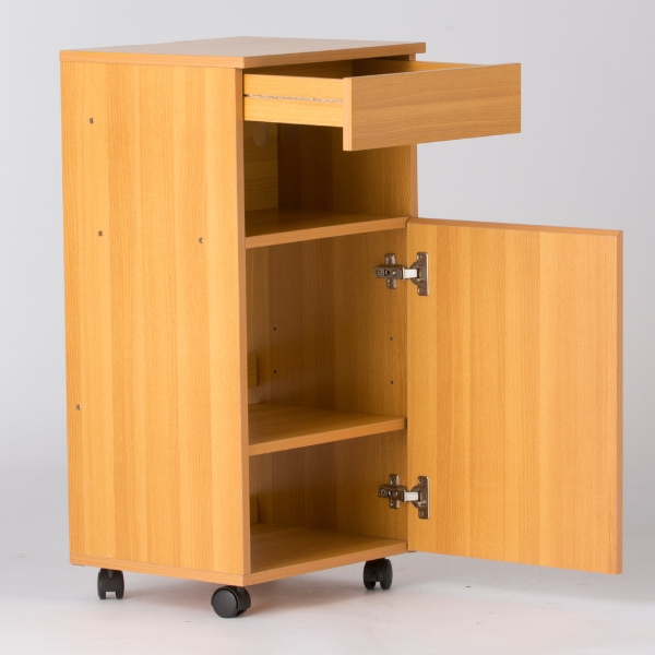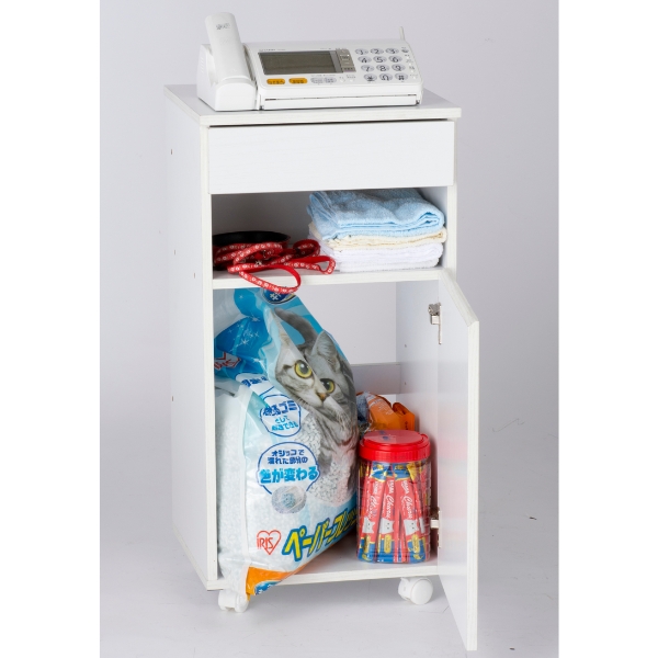 引出し収納・オープンスペース収納・扉収納と、一台で様々な使い方ができます。