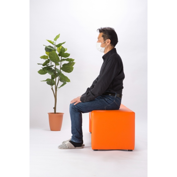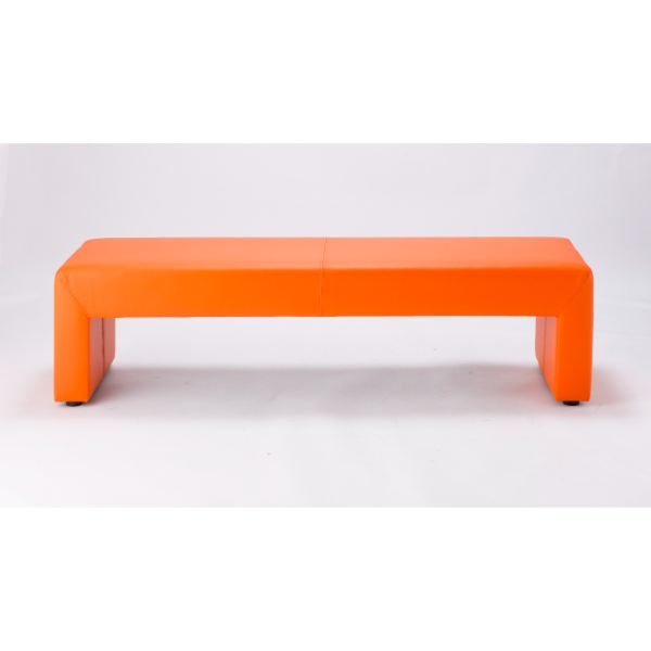 【法人限定/直送】ロビーチェア 3人掛け 背なし 幅150cm 完成品 待合椅子 レザー ベンチ 長椅子 病院 業務用 受付 オレンジ
