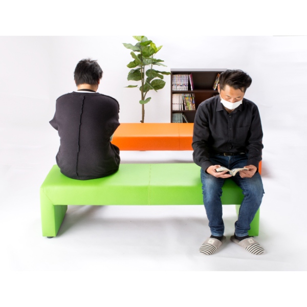 幅は150cmで3人掛け仕様となっており、間をあければソーシャルディスタンスにも対応できるようになっています。