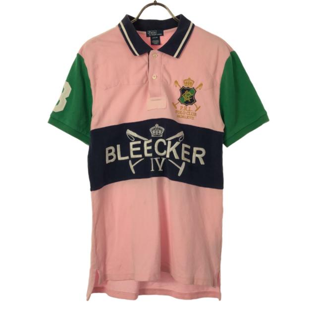 ポロバイラルフローレン 刺繍 半袖 ポロシャツ L(16-18) ピンク×ネイビー Polo by Ralph Lauren 鹿の子地 キッズ