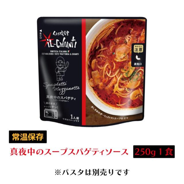 メール便 送料込み イル キャンティ 真夜中のスパゲティ レトルトパスタソース250g×1 少し辛目のガーリックトマトスープ仕立て 常温保存 スープパスタ