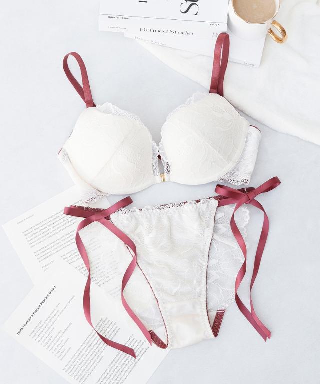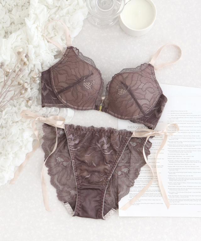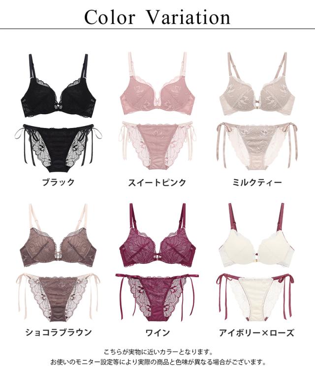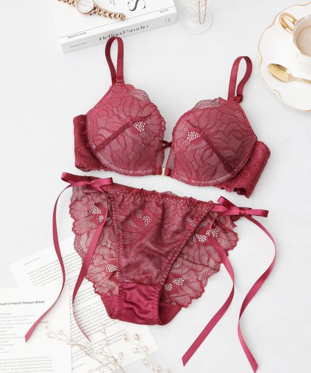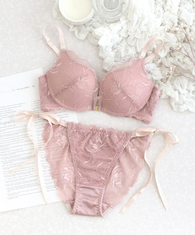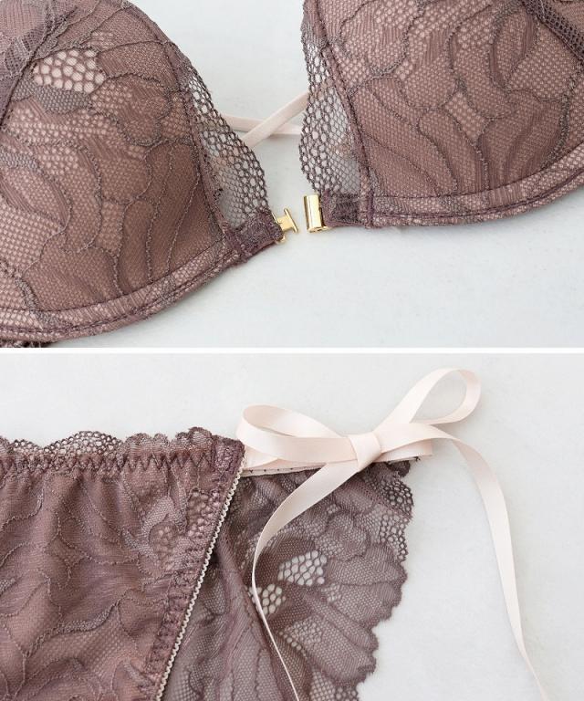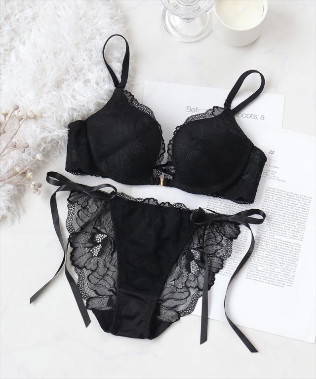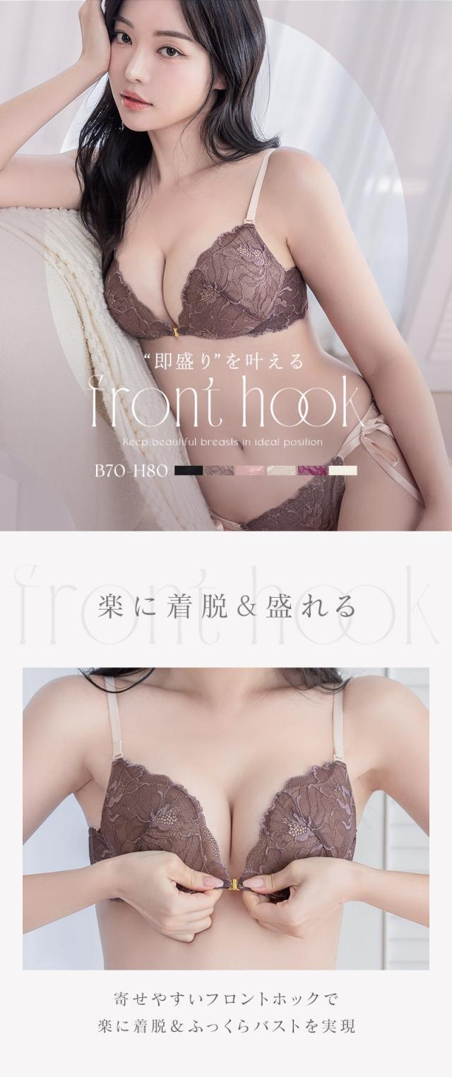 ピオニーレースフロントホックブラ&ショーツ グラマーサイズ セット 紐パン 盛れる 谷間 【冬新作】