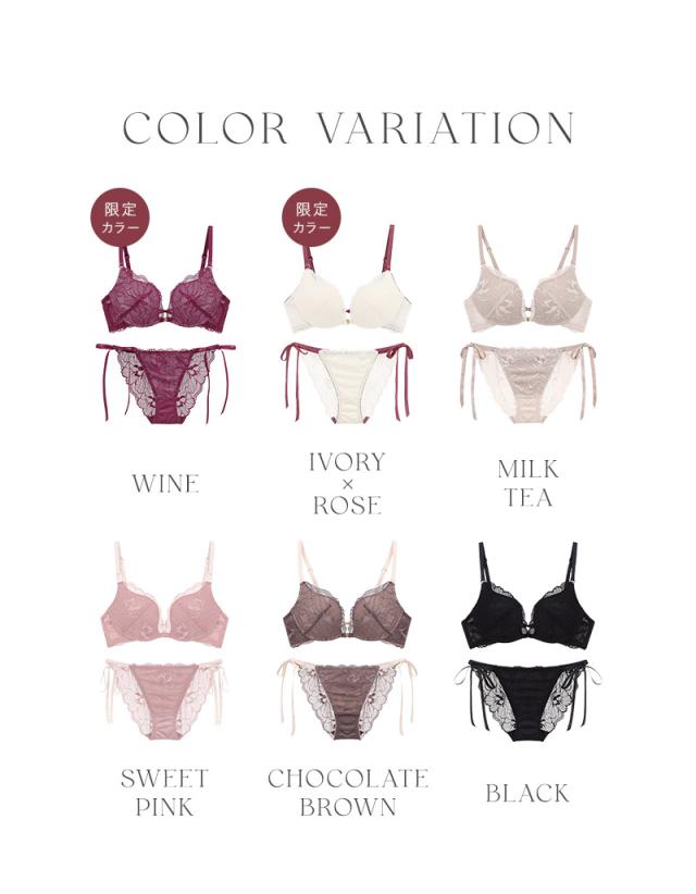 tu-hacci Bra&Shorts Collection ブラ&ショーツ / 計2点セット 凛と咲き誇る芍薬をモチーフにしたストレッチレースで、全体をたっぷりとドレスアップ。 フロントのゴールドホックはディテールまで抜かりないデザインに仕上げる。 リュクスな装いで大人の色気を感じさせる一着。 フロントホックには珍しい、アンダー調節可能タイプで優しく体にフィット。 おしゃれだけでなく機能性も整ったブラ。 お揃いショーツのフェイクリボン×贅沢レースは、見た者の心を痺れさせる。 コンフォートな履き心地のレースバックショーツ。 ■こんなお悩みのある方におすすめです ・最近バストにハリがなくなってきた ・綺麗な谷間やバストにボリュームが欲しい ・左右に胸が離れている ≫ ギフトラッピングはこちら ≪ |