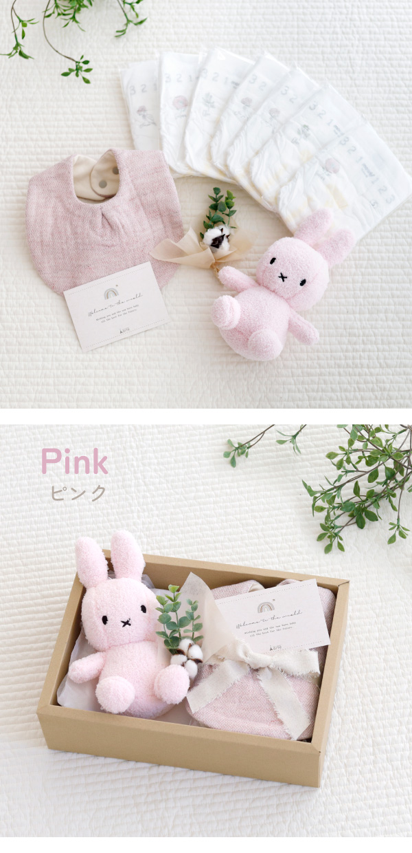 | セット内容 | ・ミッフィーぬいぐるみ×1 ・スタイ×1 ・おむつ(ナチュラルムーニー) ・アーティフィシャルフラワー×1 |