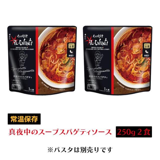 メール便 送料込み イル キャンティ 真夜中のスパゲティ レトルトパスタソース250g×2 少し辛目のガーリックトマトスープ仕立て 常温保存 スープパスタ