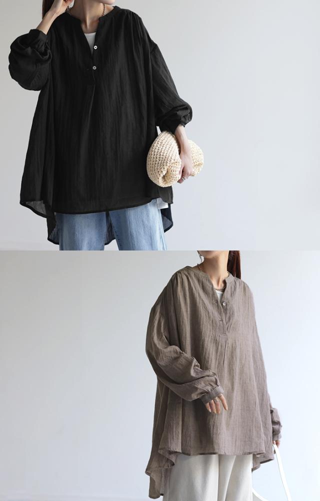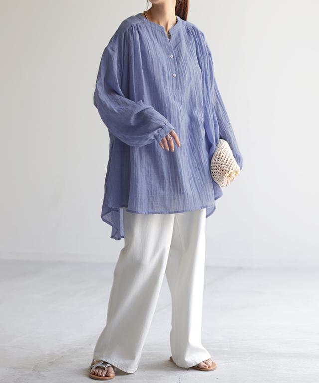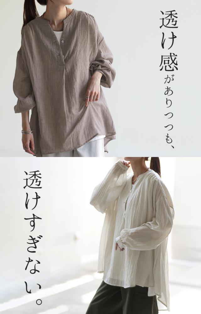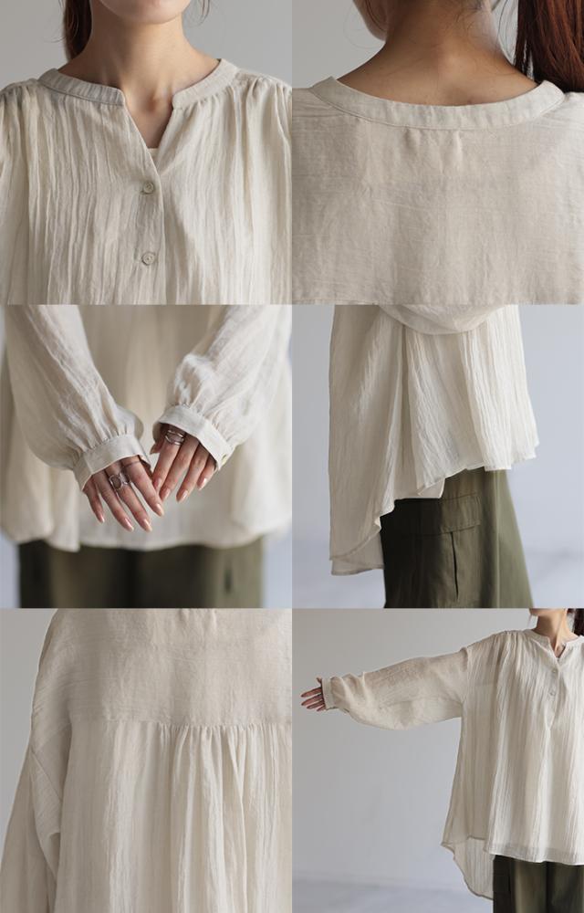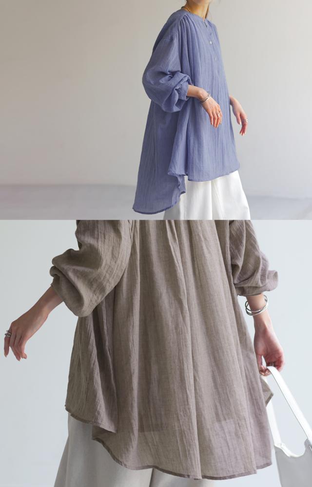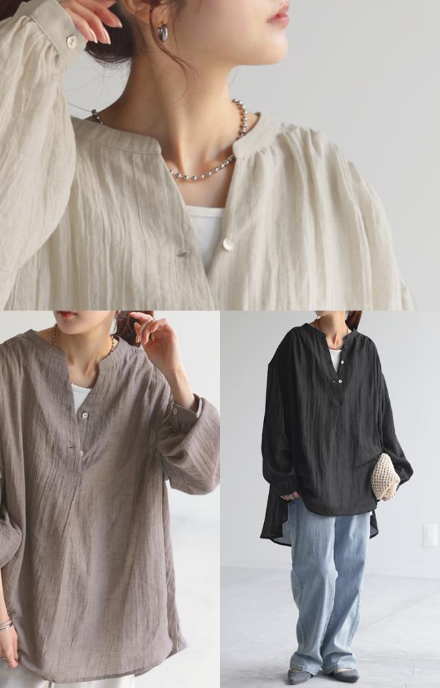 ヘンリーネックで程よいカジュアル感のあるブラウスです。