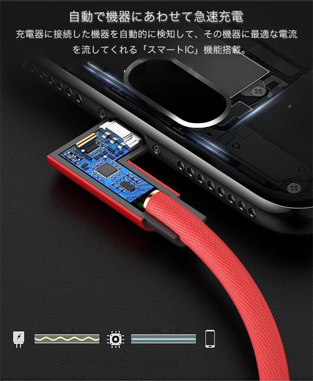 TypeC USB充電ケーブル Type-C Type C 充電ケーブル 最大2.4A 急速充電 L字コネクタ 頑丈 ナイロンメッシュ 丈夫 高耐久 絡みにくい 長さ 100cm 200cm スマートIC機能搭載