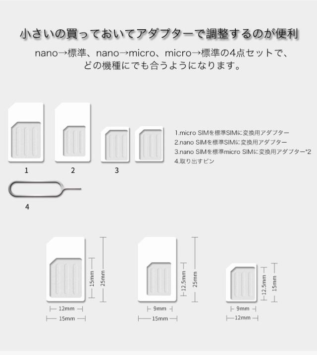 nano→標準、nano→micro、micro→標準の5点セットで、どの機種にでも合うようになります。(取り出すピン付)