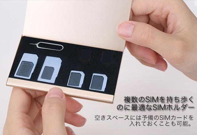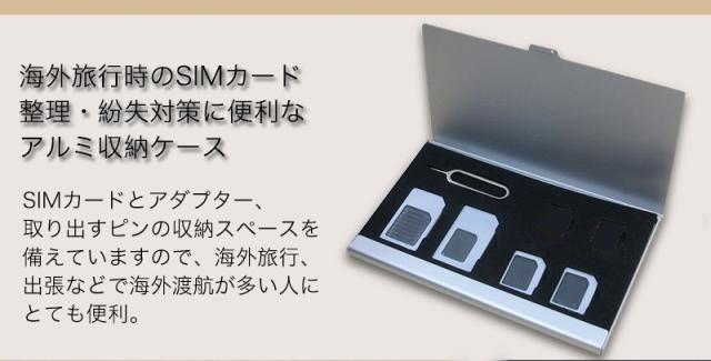 SIMカード 収納 アルミケース nano SIM micro SIM 標準SIM 変換 アダプター 5点セット 取り出すピン付き SIM カードケース スマホ拡張 紛失防止