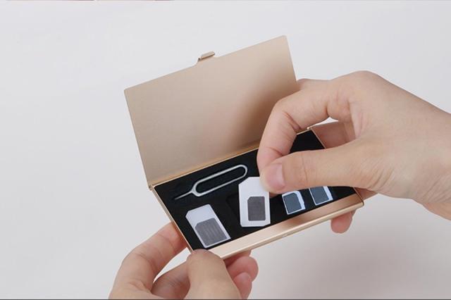 ナノSIM、マイクロSIMを標準SIMサイズに変更したり、ナノSIMをマイクロSIMに変更したりすることができるアダプター。